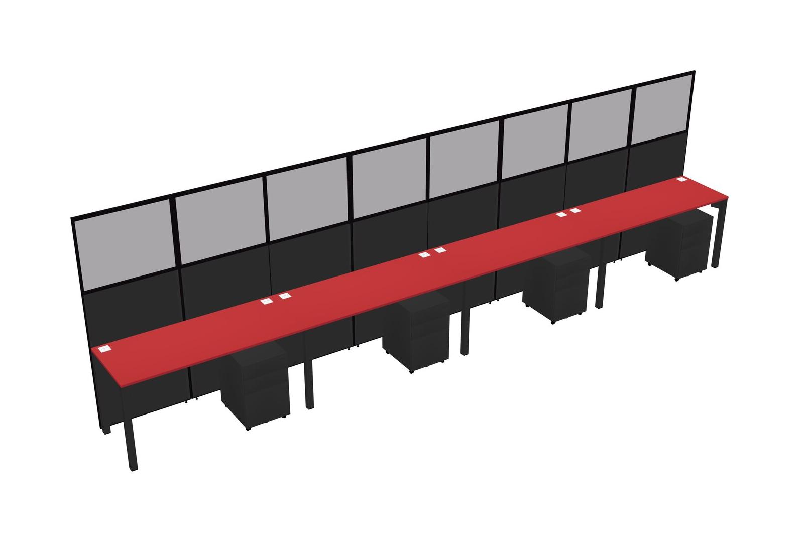 Prism Red Shared Rectangular Office Cubicle Panel System With Mobile Drawers For 4 Persons