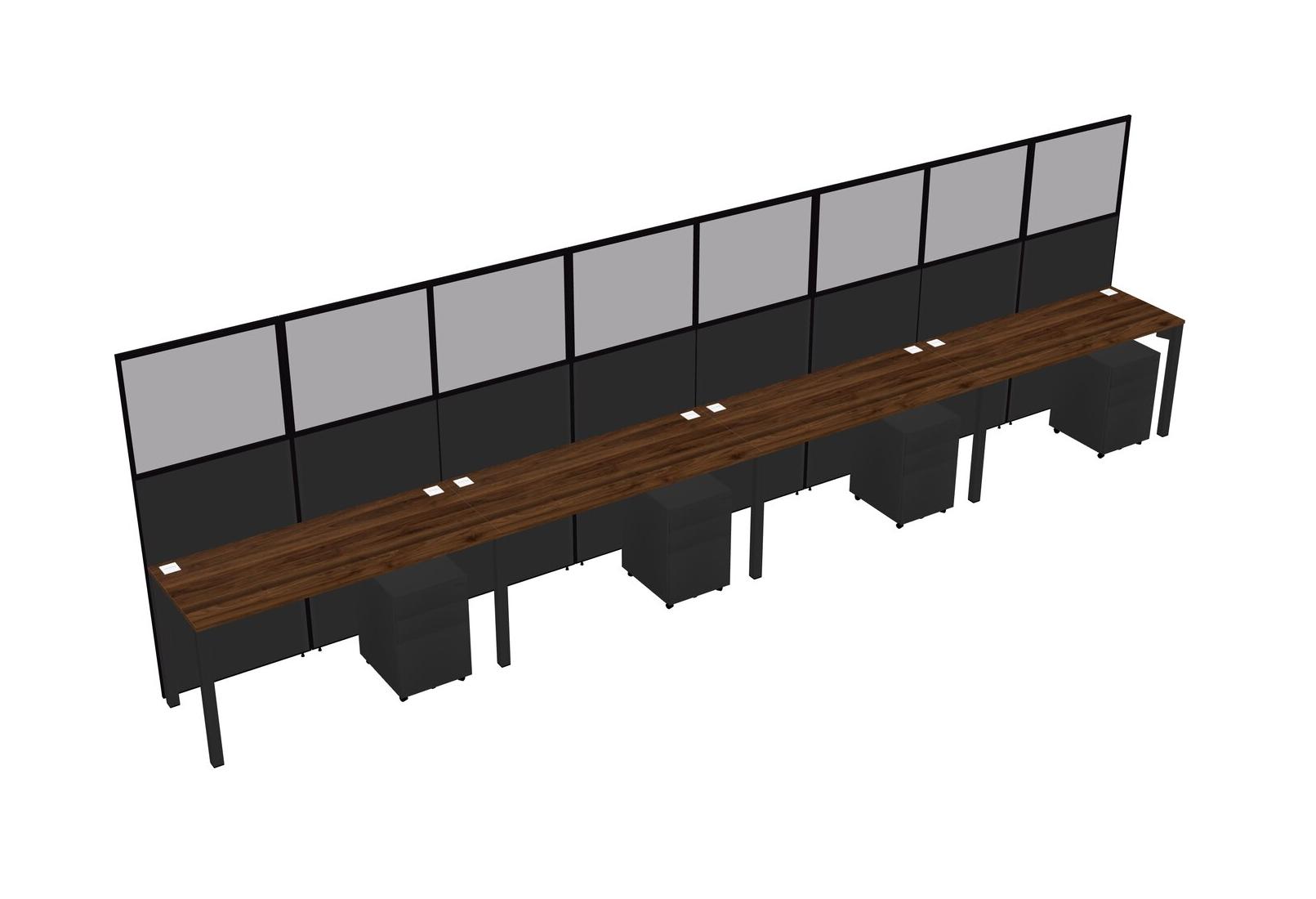Columbia Walnut Shared Rectangular Office Cubicle Panel System With Mobile Drawers For 4 Persons