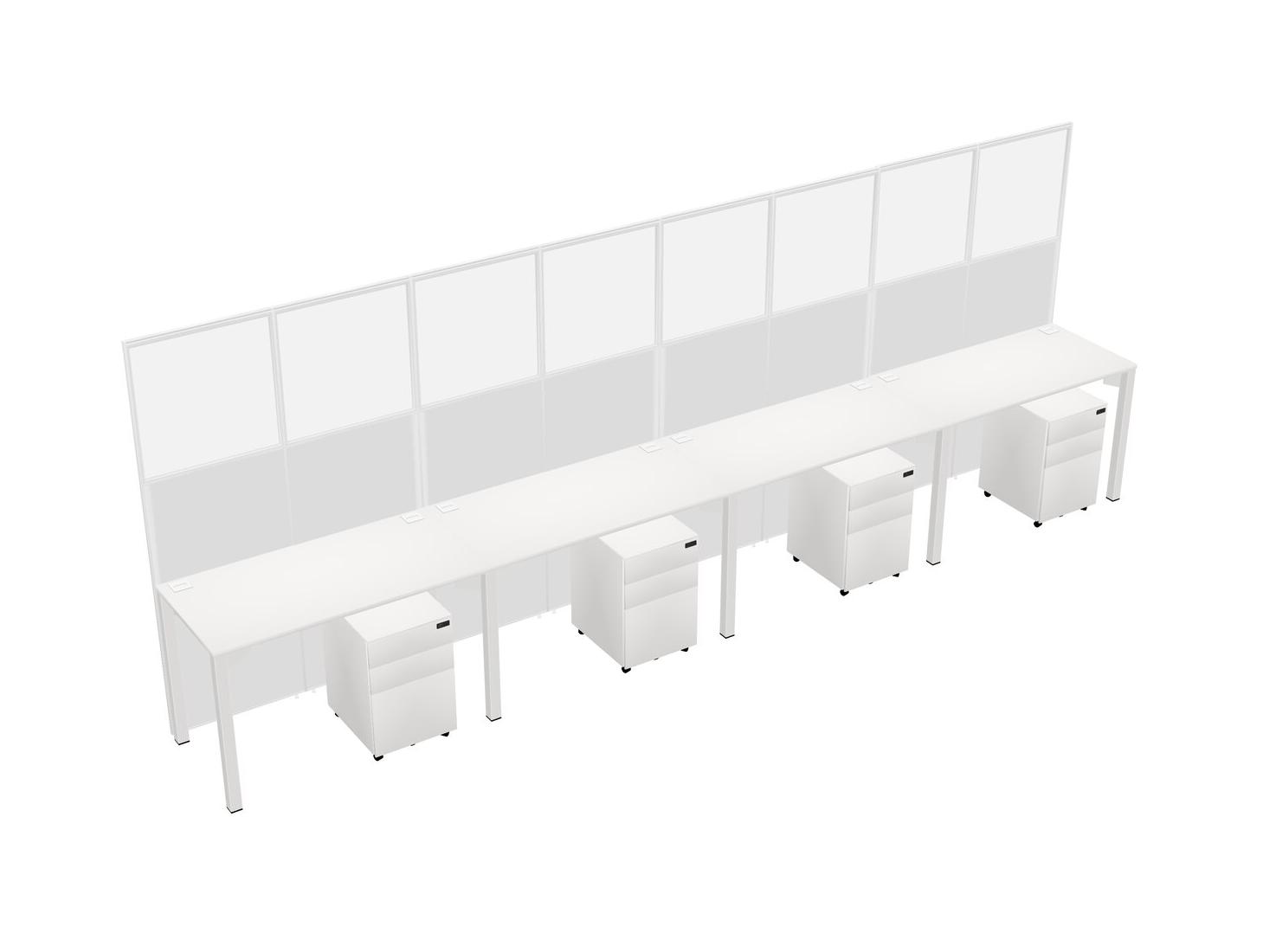 White Shared Rectangular Office Cubicle Panel System With Mobile Drawers For 4 Persons