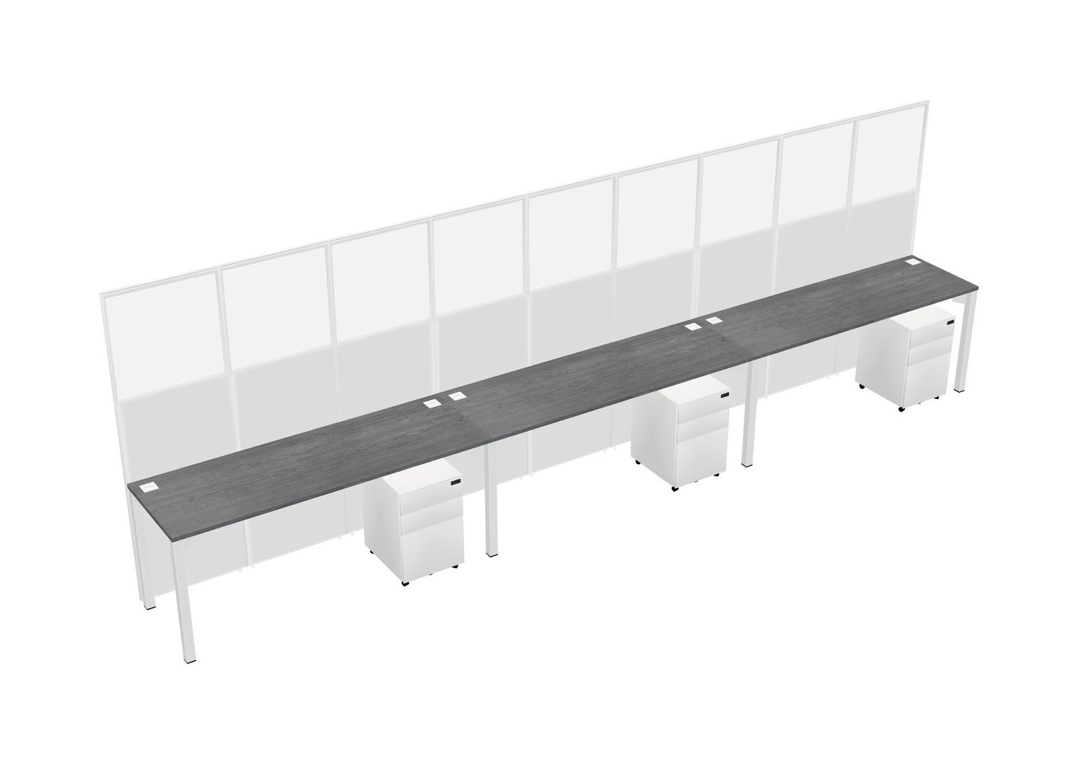 Grey Shared Rectangular Office Cubicle Panel System With Mobile Drawers For 3 Persons
