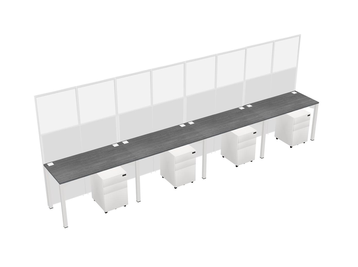 Grey Shared Rectangular Office Cubicle Panel System With Mobile Drawers For 4 Persons