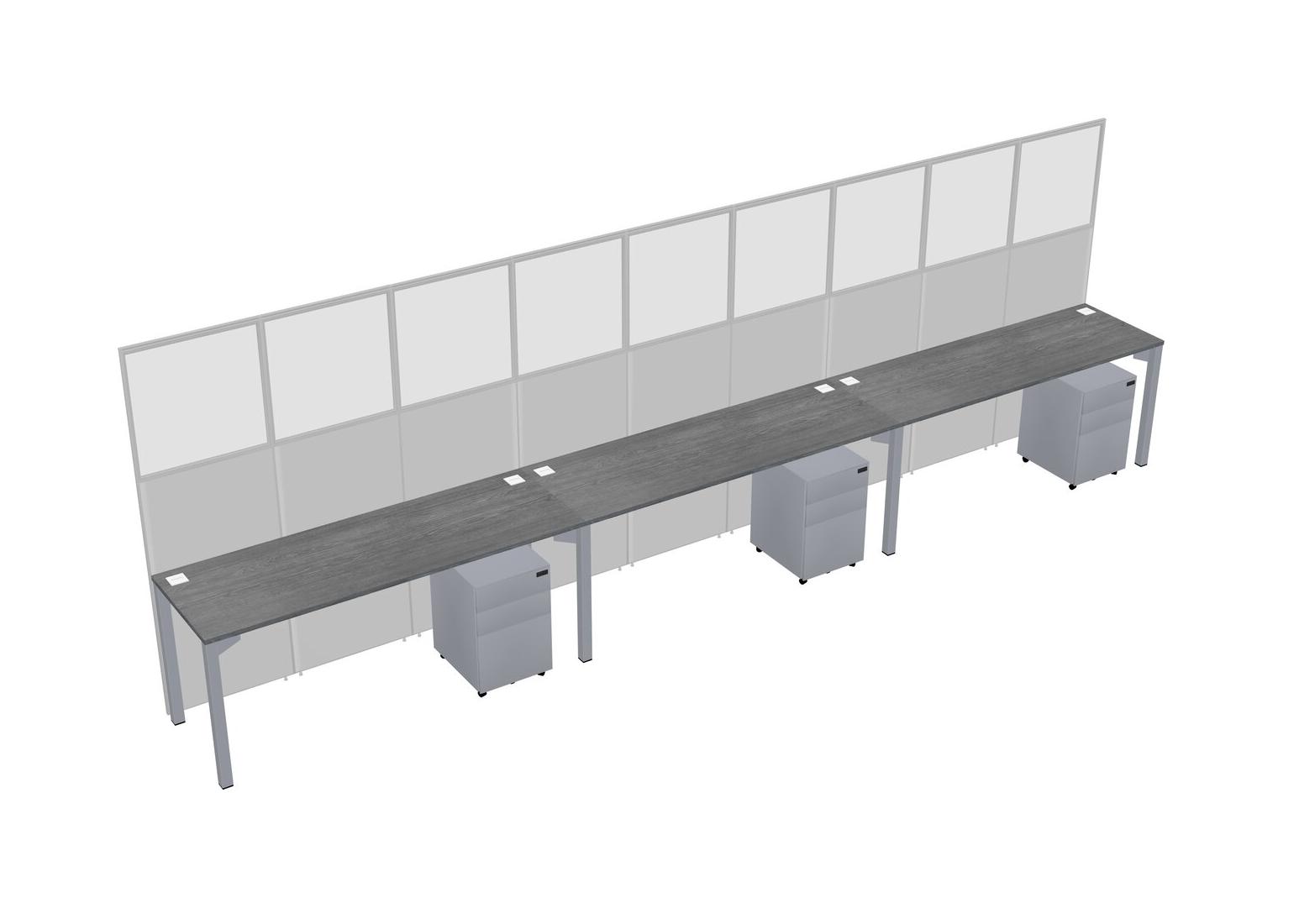 Grey Shared Rectangular Office Cubicle Panel System With Mobile Drawers For 3 Persons