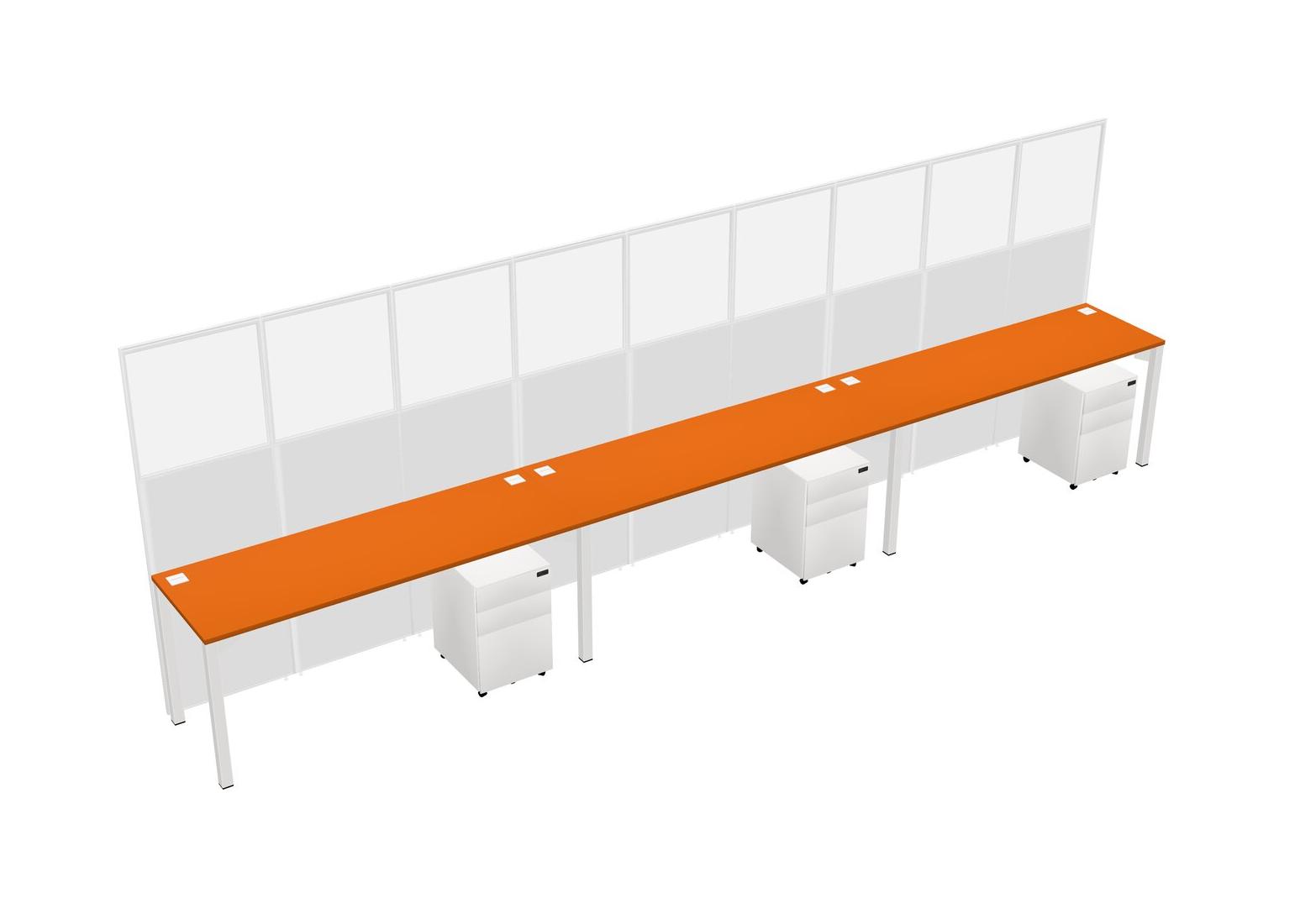 Orange Shared Rectangular Office Cubicle Panel System With Mobile Drawers For 3 Persons