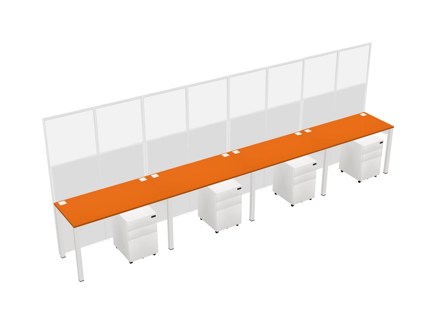 Orange Shared Rectangular Office Cubicle Panel System With Mobile Drawers For 4 Persons