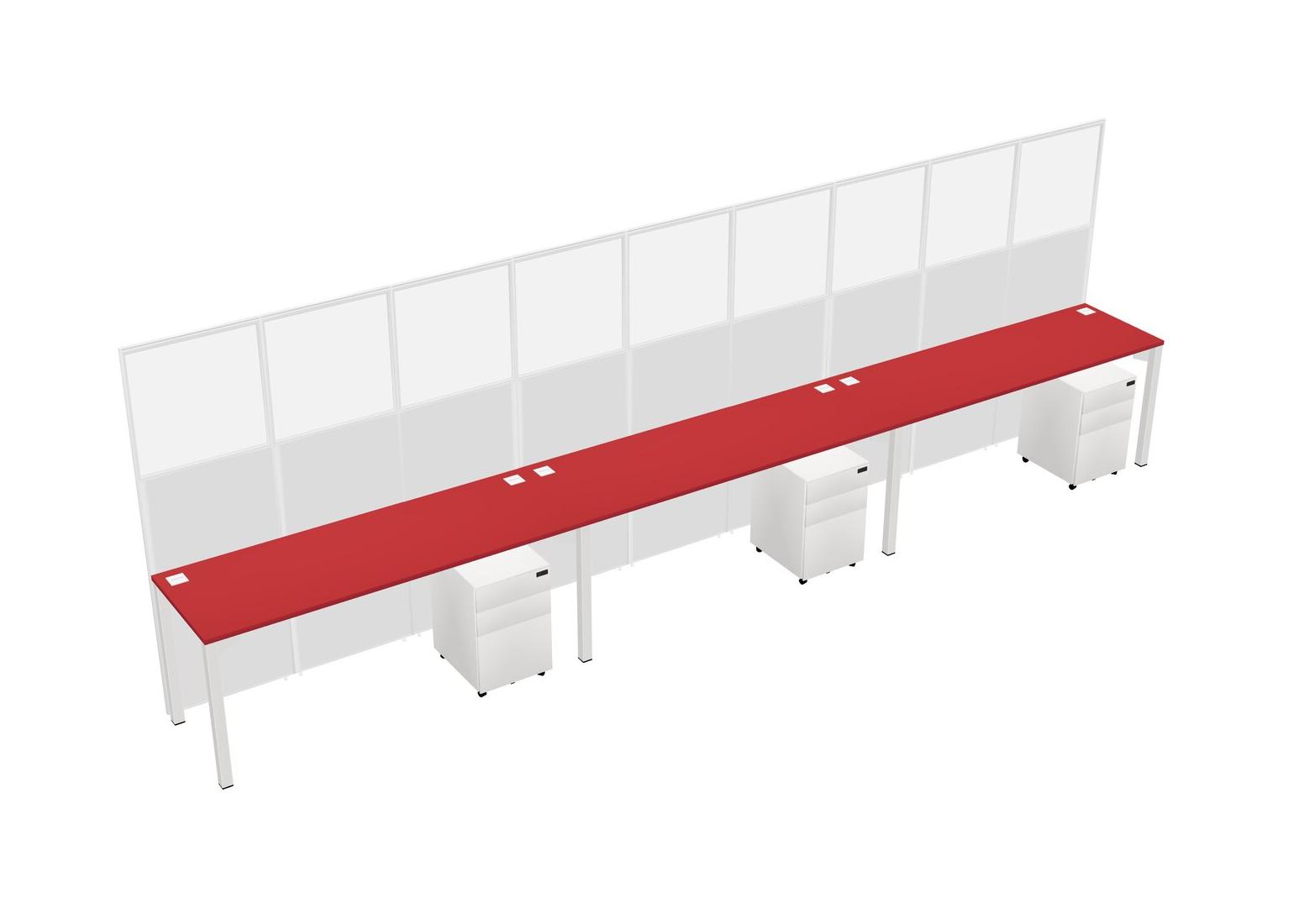 Prism Red Shared Rectangular Office Cubicle Panel System With Mobile Drawers For 3 Persons
