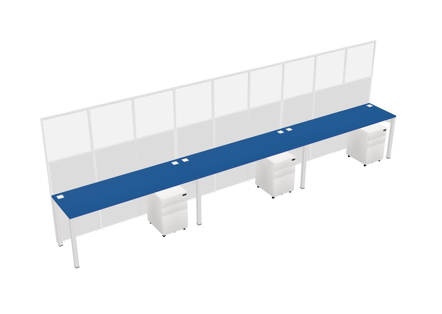 Prism Blue Shared Rectangular Office Cubicle Panel System With Mobile Drawers For 3 Persons