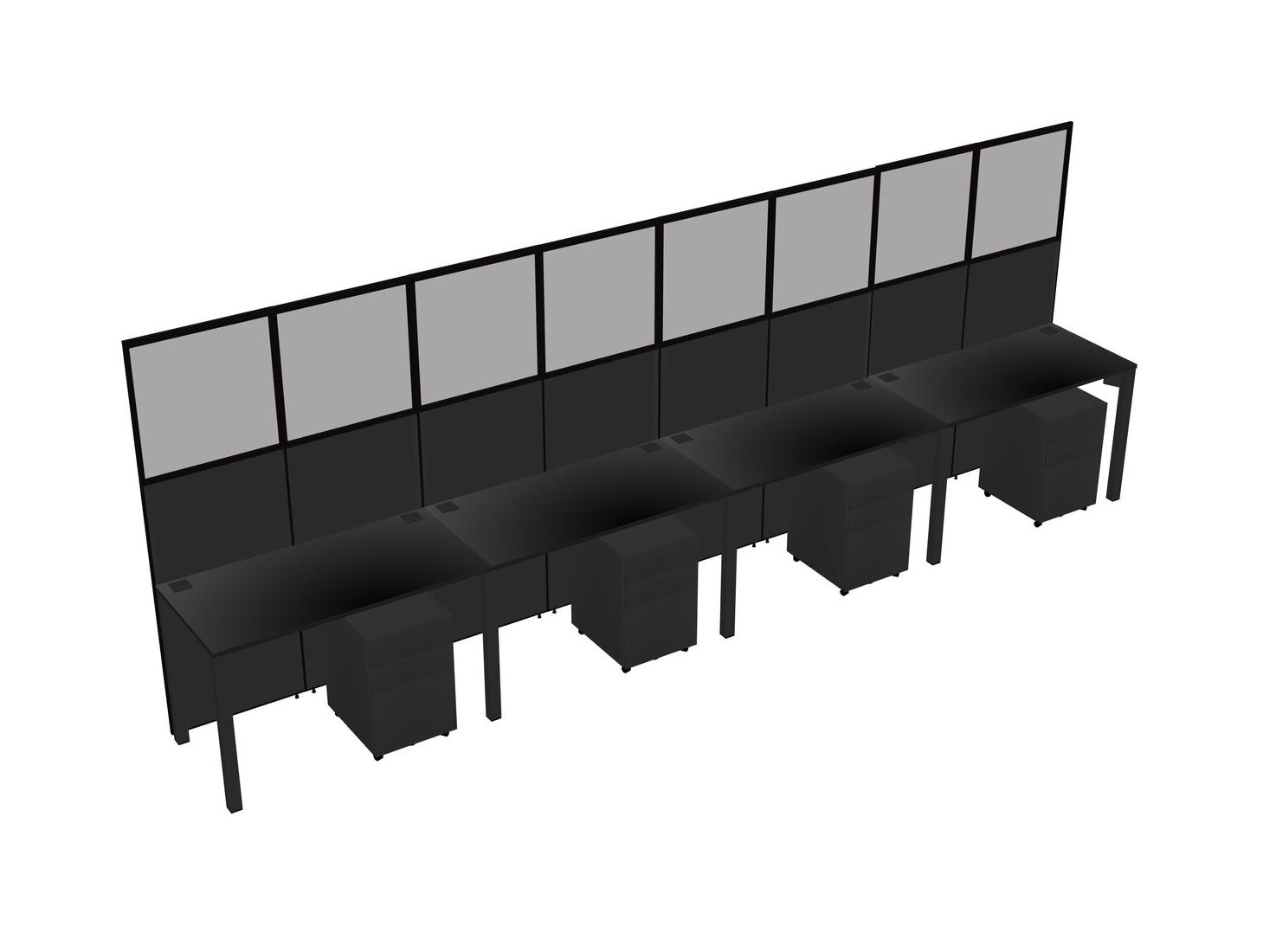 Black Shared Rectangular Office Cubicle Panel System With Mobile Drawers For 4 Persons