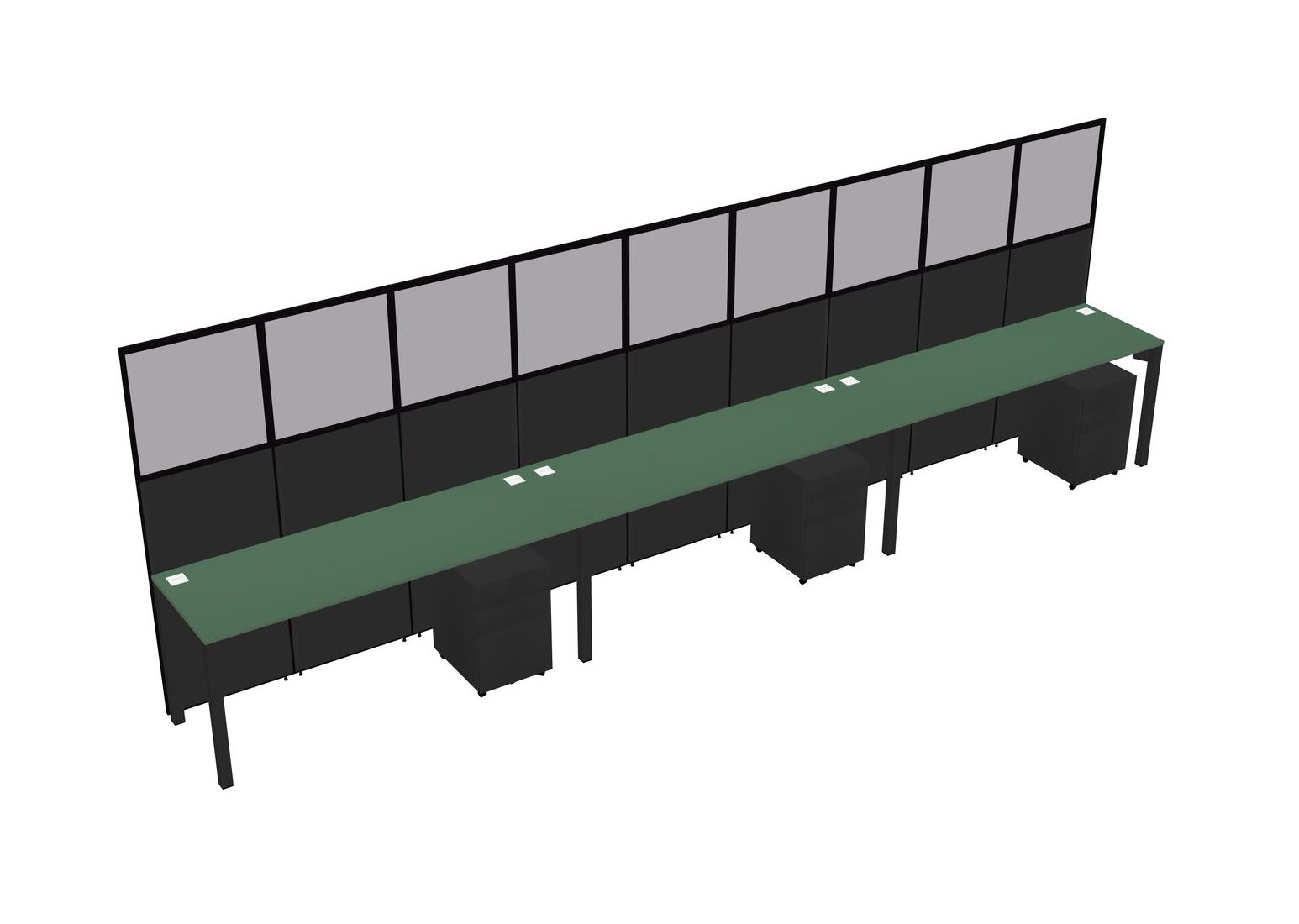 Green Shared Rectangular Office Cubicle Panel System With Mobile Drawers For 3 Persons