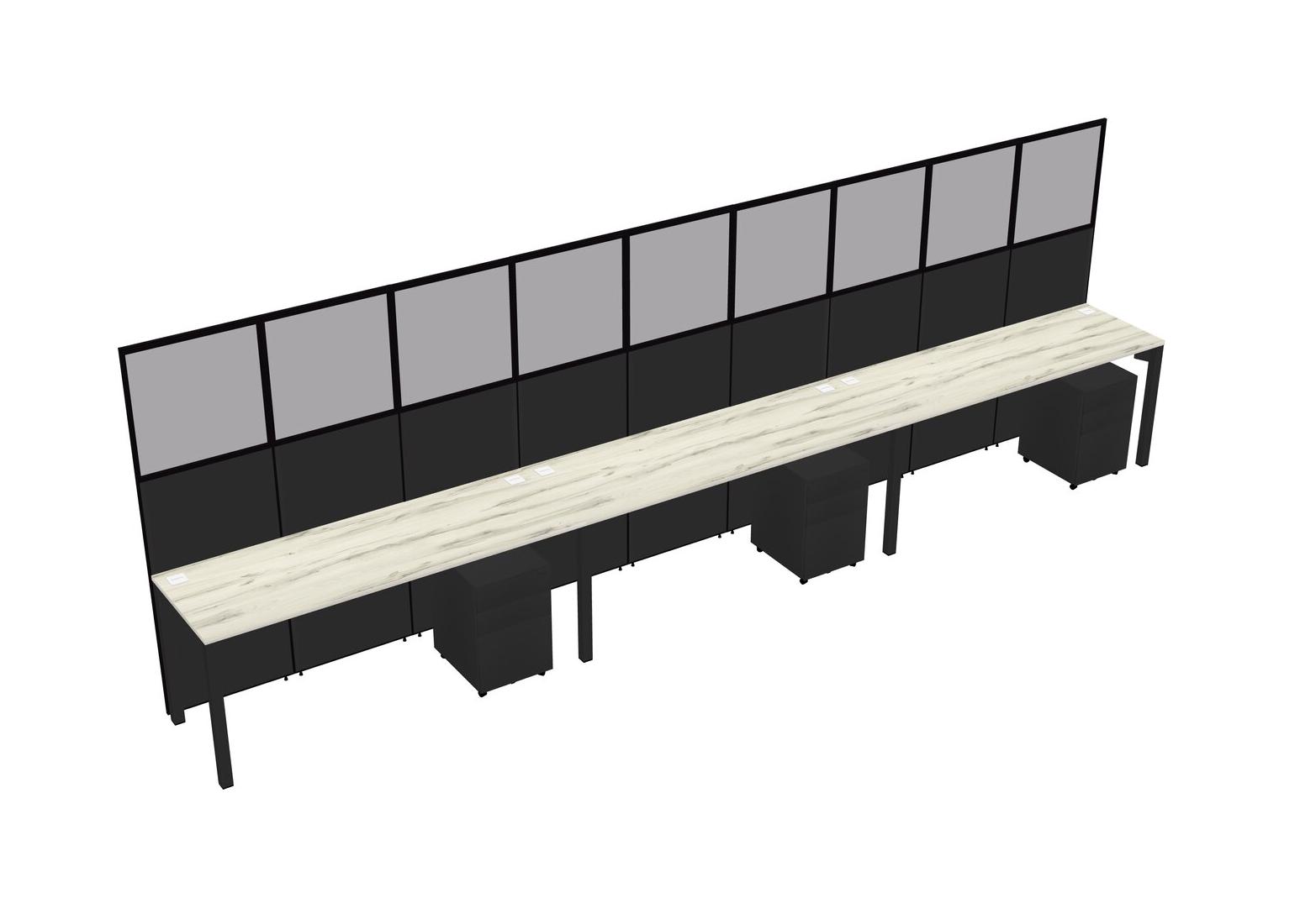 Heinne Holz Shared Rectangular Office Cubicle Panel System With Mobile Drawers For 3 Persons
