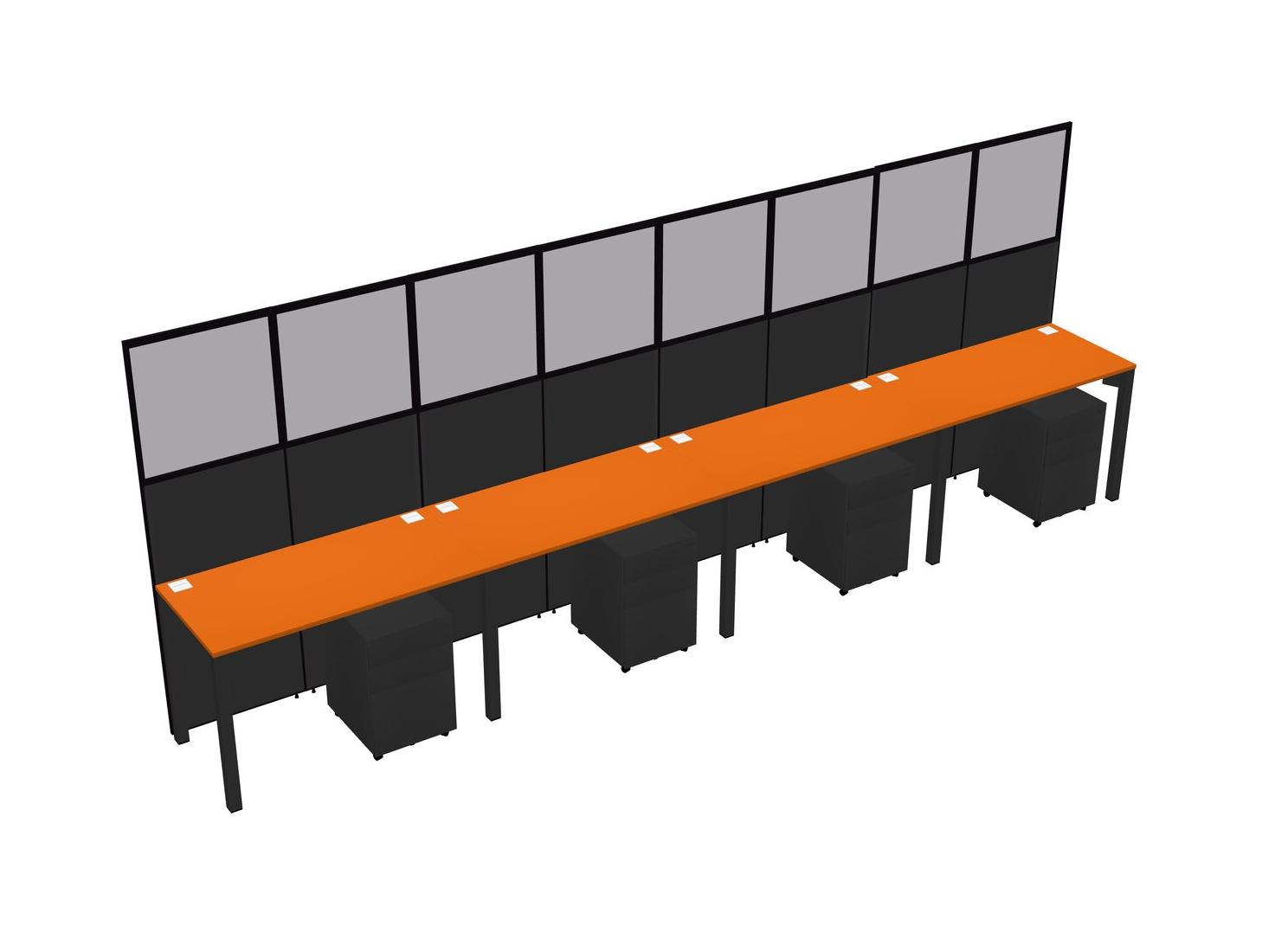 Orange Shared Rectangular Office Cubicle Panel System With Mobile Drawers For 4 Persons