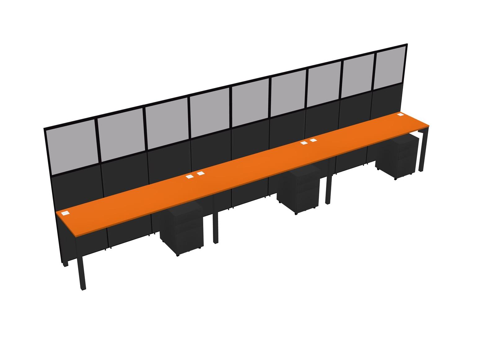 Orange Shared Rectangular Office Cubicle Panel System With Mobile Drawers For 3 Persons