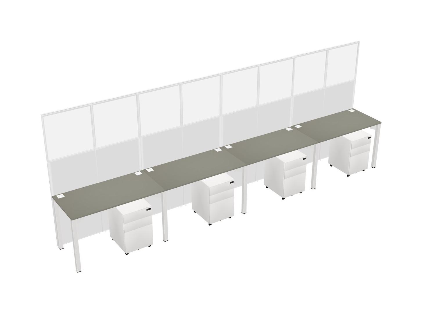 Grey Shadows Shared Rectangular Office Cubicle Panel System With Mobile Drawers For 4 Persons