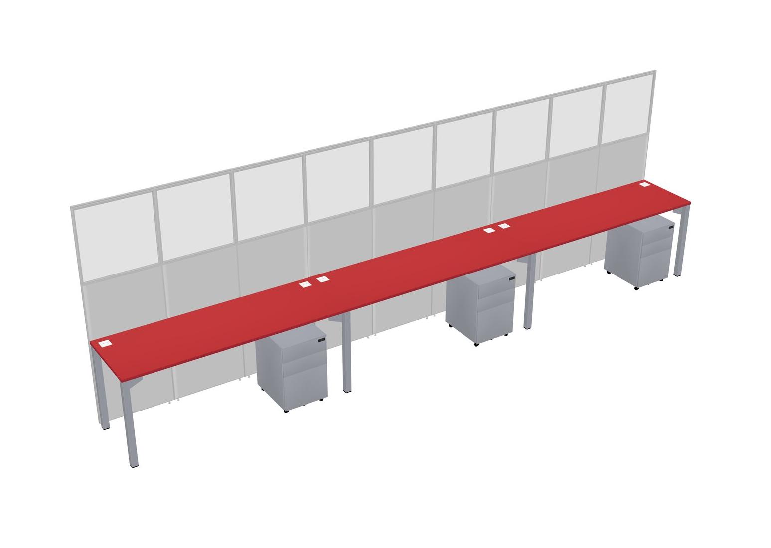 Prism Red Shared Rectangular Office Cubicle Panel System With Mobile Drawers For 3 Persons