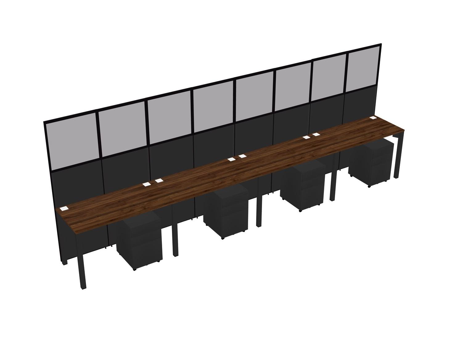 Columbia Walnut Shared Rectangular Office Cubicle Panel System With Mobile Drawers For 4 Persons