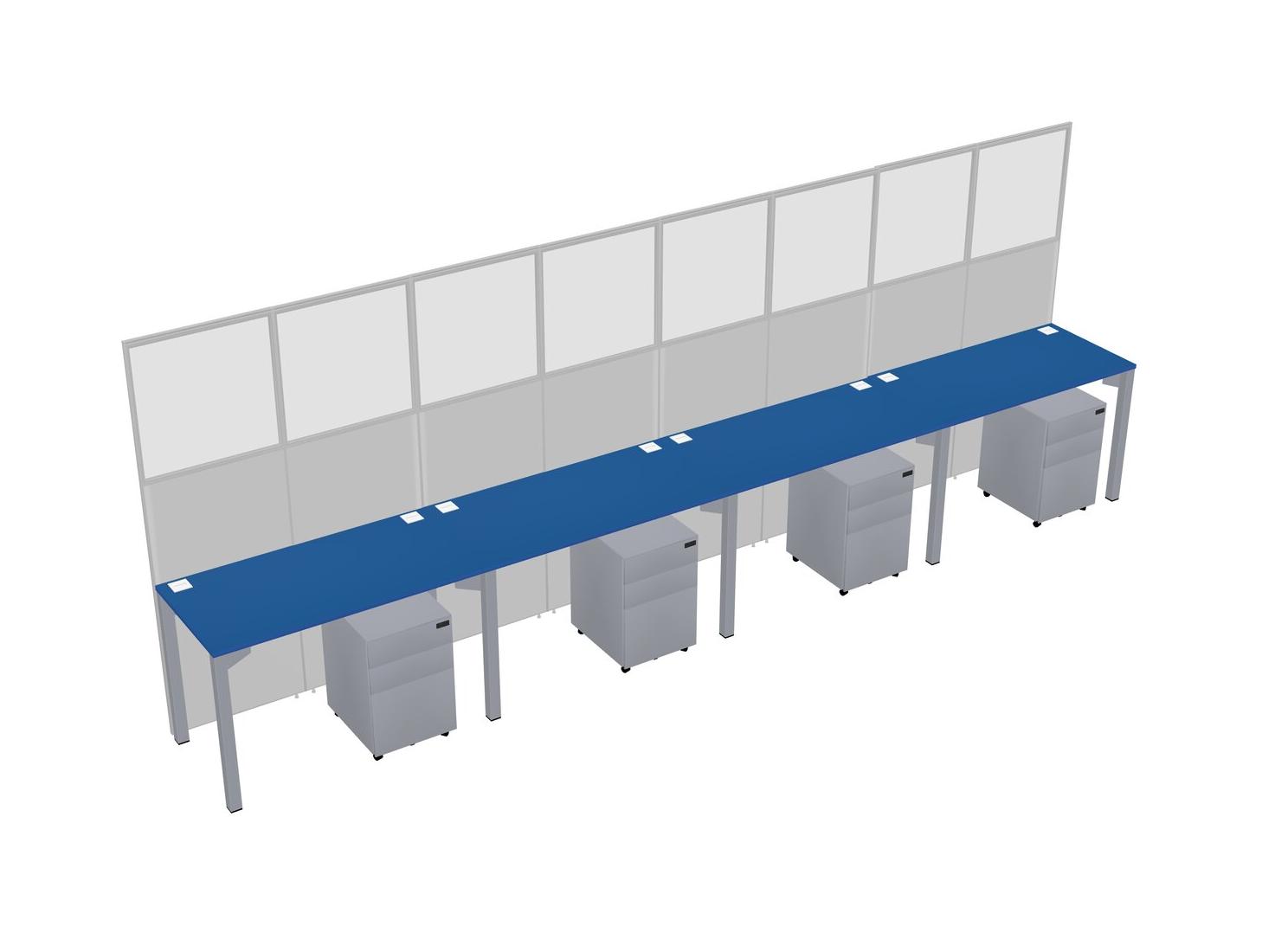 Prism Blue Shared Rectangular Office Cubicle Panel System With Mobile Drawers For 4 Persons