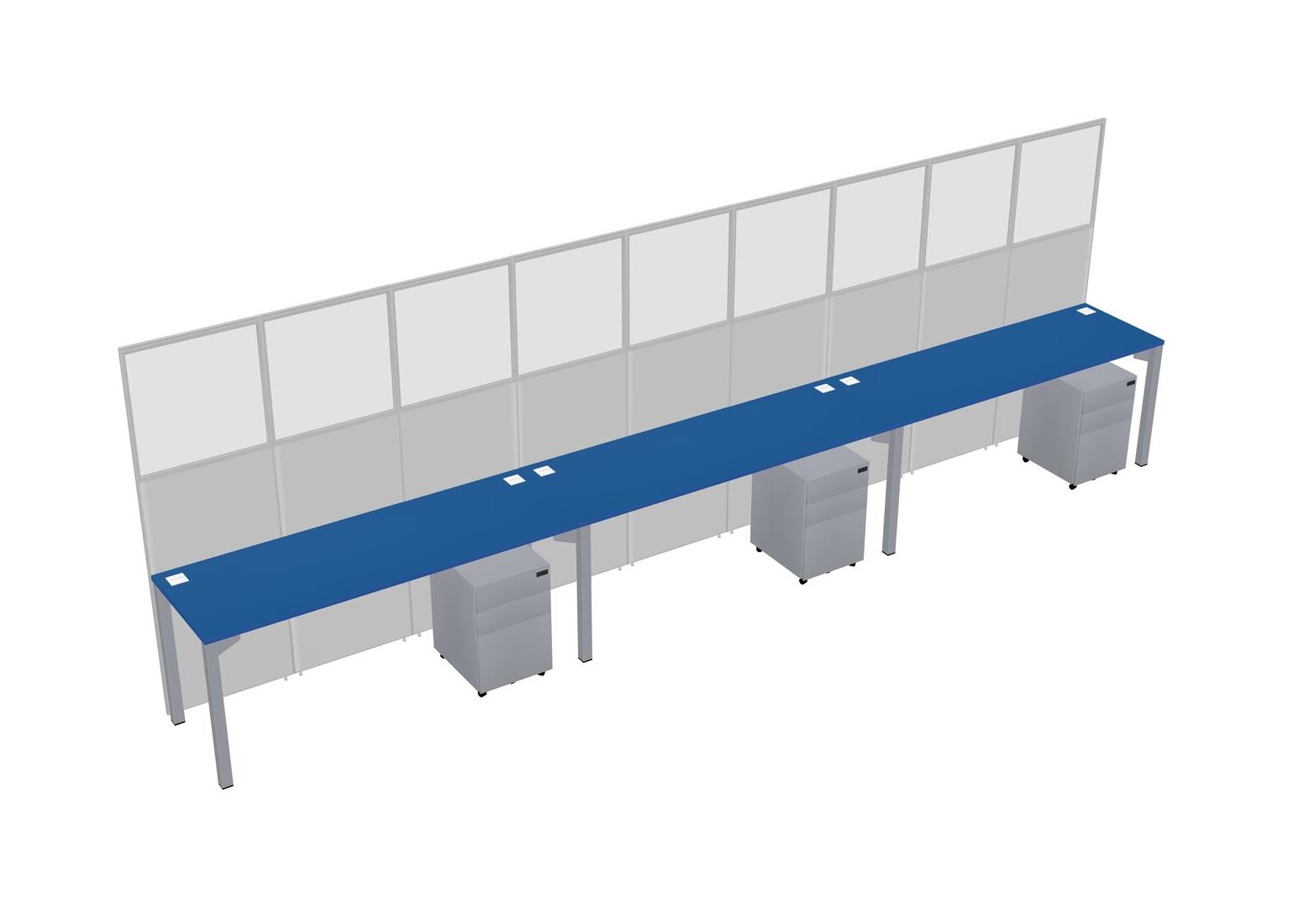 Prism Blue Shared Rectangular Office Cubicle Panel System With Mobile Drawers For 3 Persons