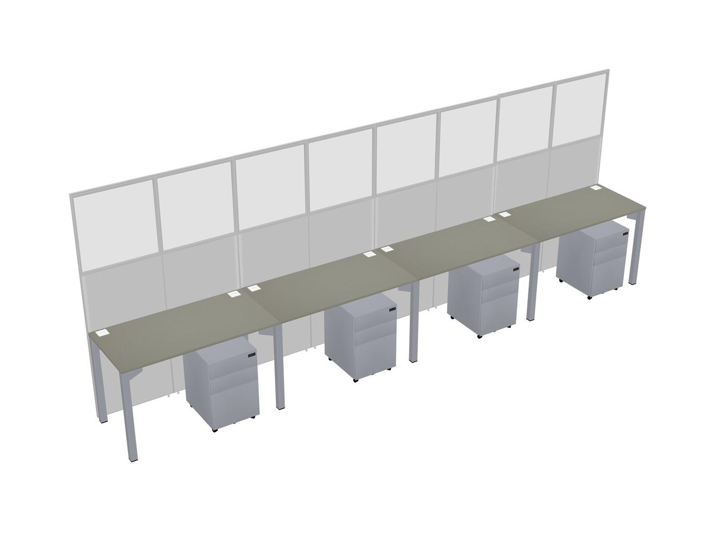 Grey Shadows Shared Rectangular Office Cubicle Panel System With Mobile Drawers For 4 Persons
