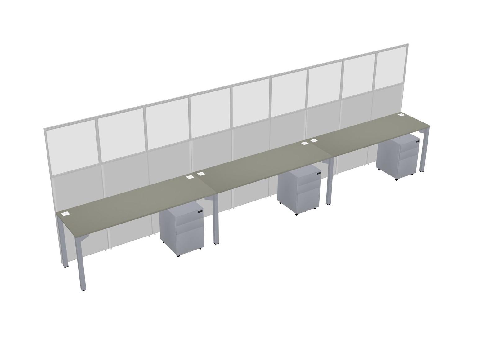 Grey Shadows Shared Rectangular Office Cubicle Panel System With Mobile Drawers For 3 Persons