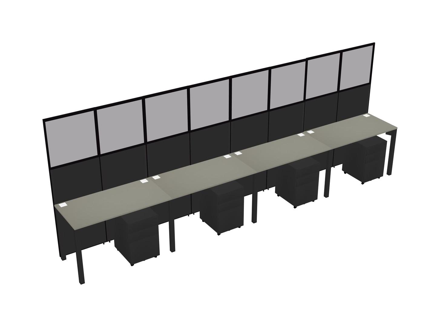 Grey Shadows Shared Rectangular Office Cubicle Panel System With Mobile Drawers For 4 Persons