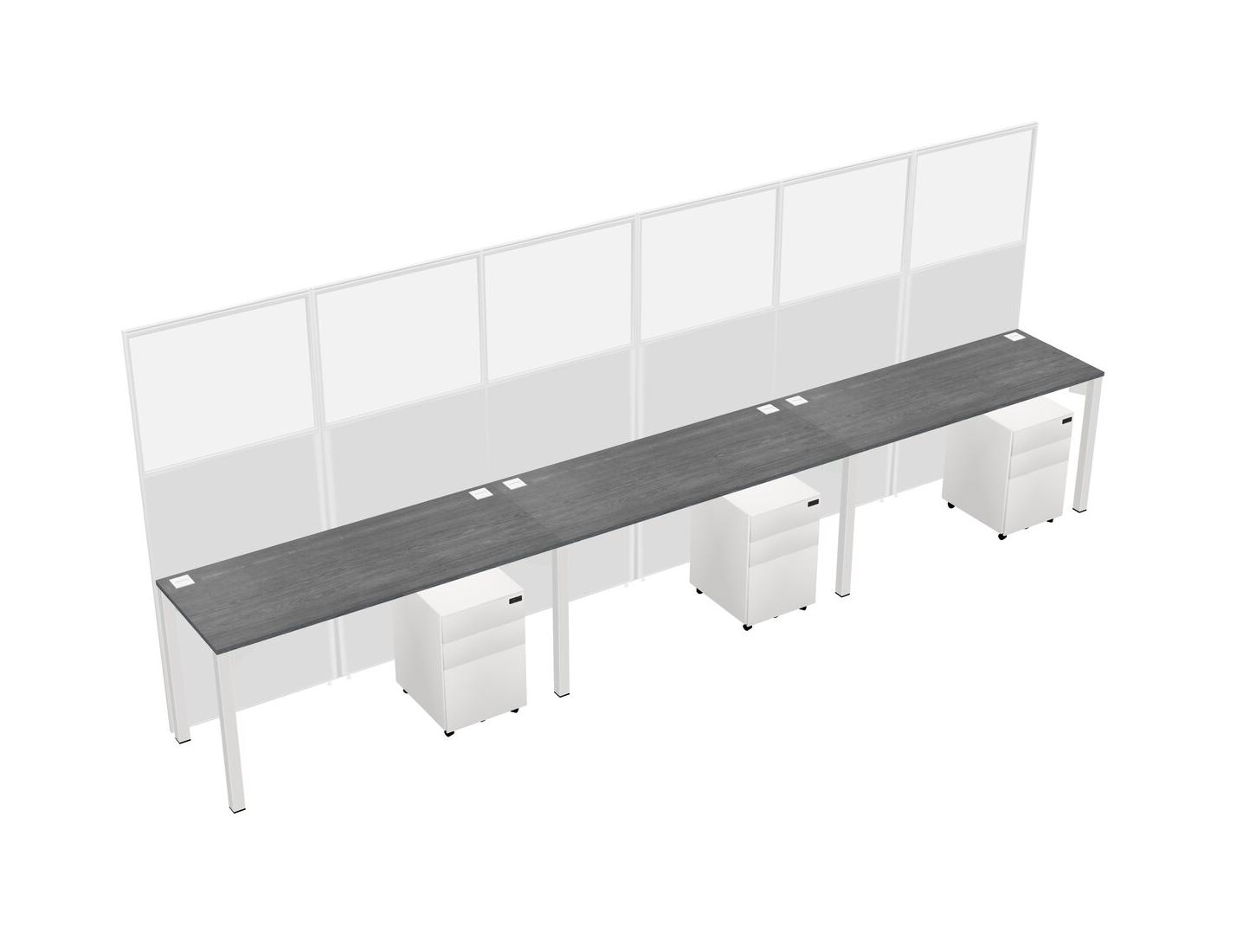 Grey Shared Rectangular Office Cubicle Panel System With Mobile Drawers For 3 Persons