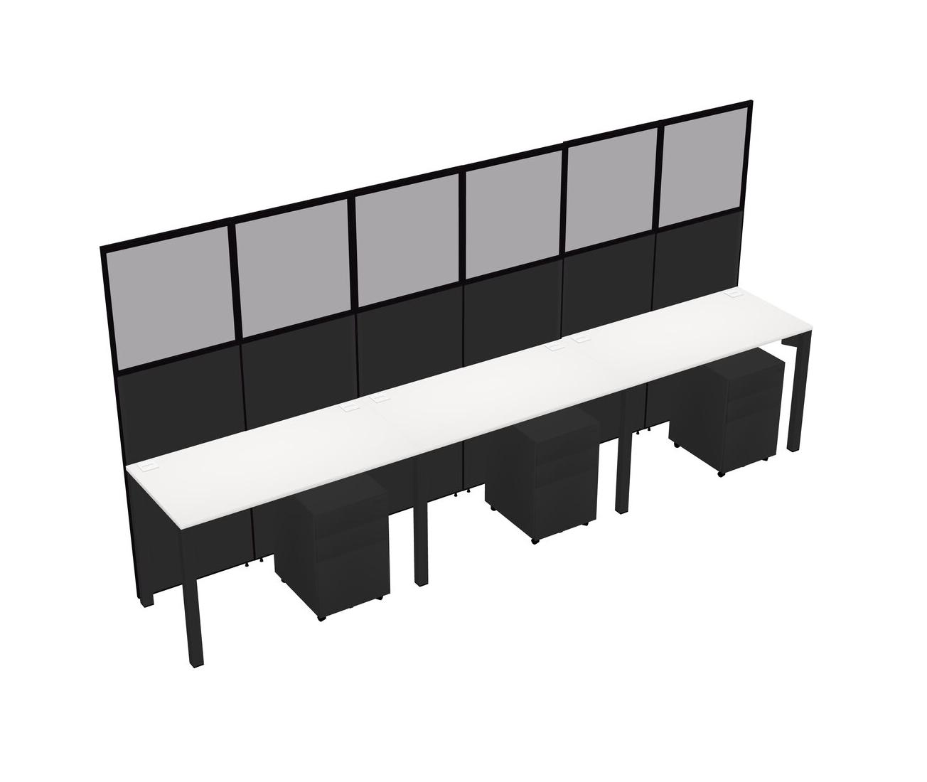 White Shared Rectangular Office Cubicle Panel System With Mobile Drawers For 3 Persons