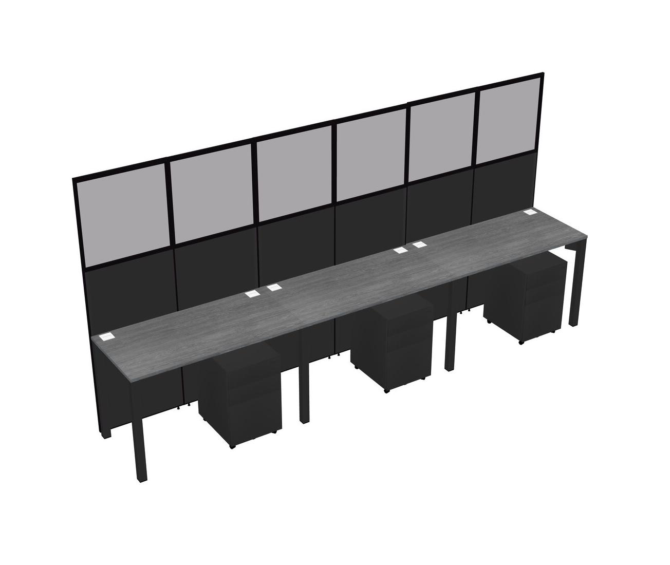 Grey Shared Rectangular Office Cubicle Panel System With Mobile Drawers For 3 Persons