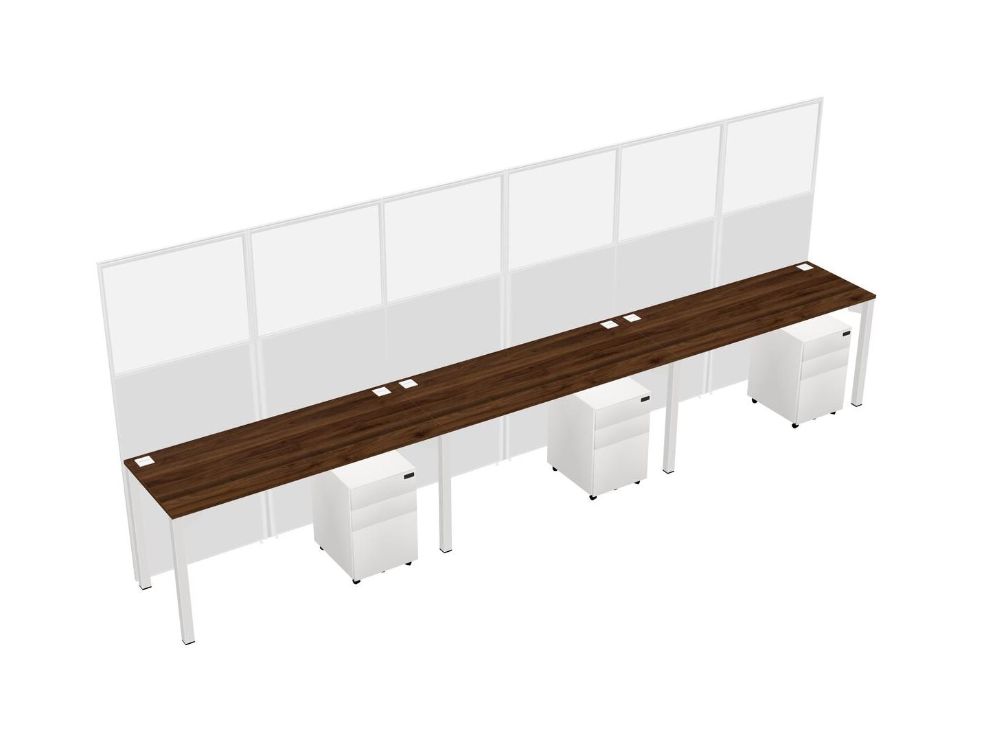 Columbia Walnut Shared Rectangular Office Cubicle Panel System With Mobile Drawers For 3 Persons