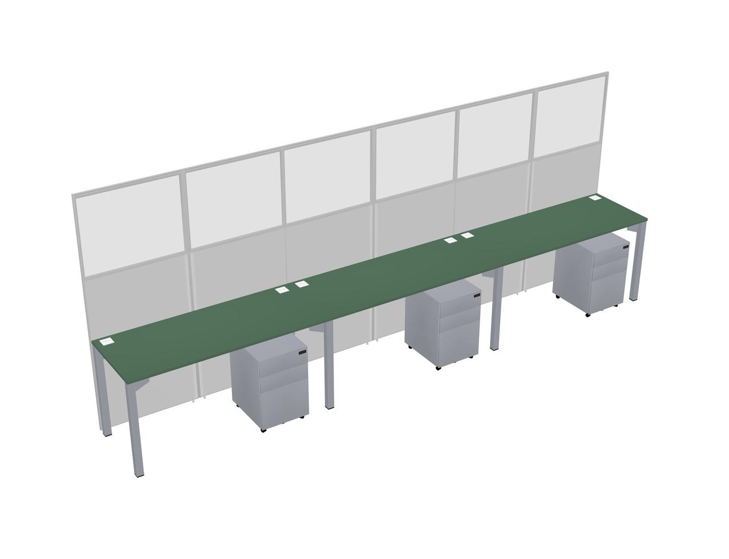 Green Shared Rectangular Office Cubicle Panel System With Mobile Drawers For 3 Persons