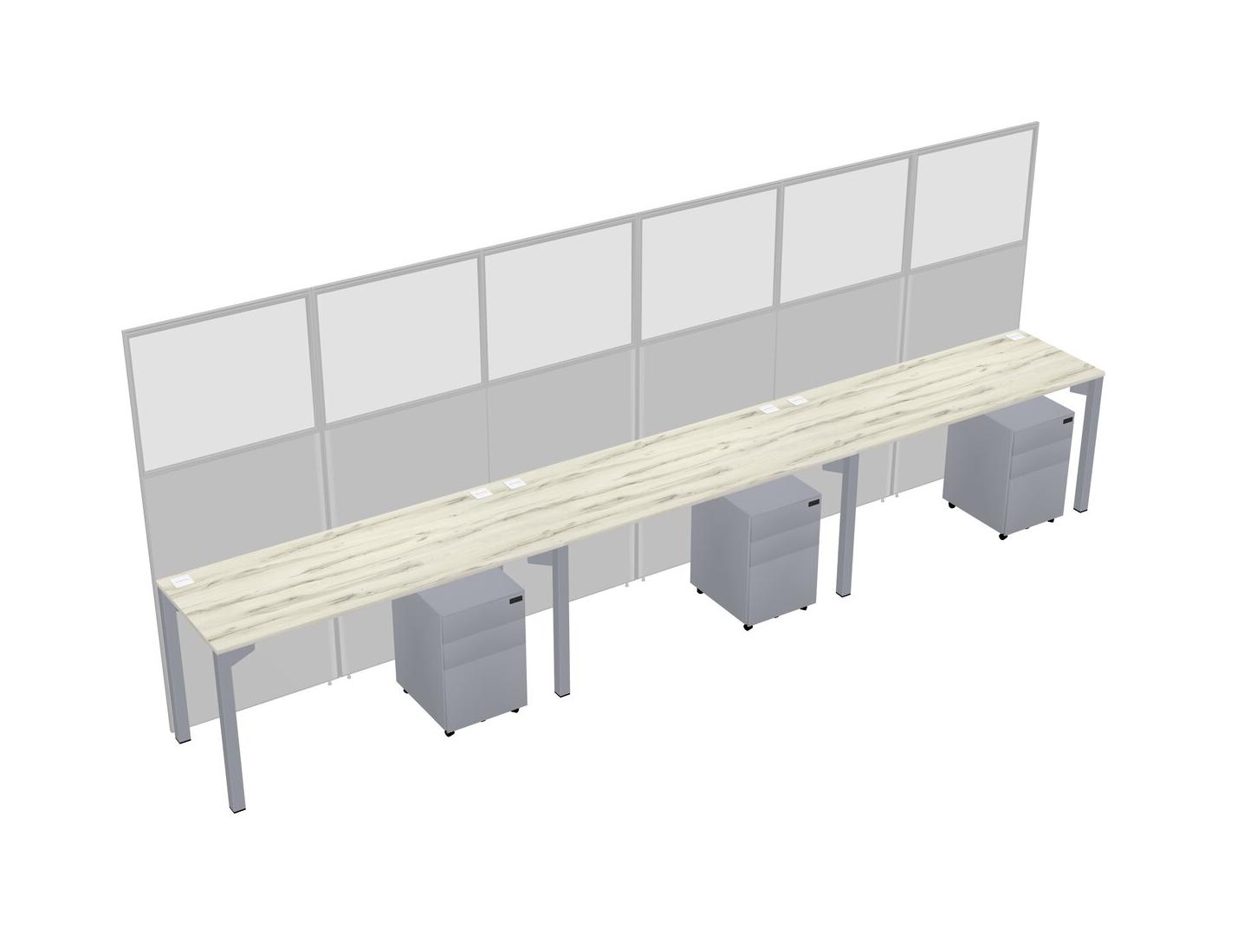 Heinne Holz Shared Rectangular Office Cubicle Panel System With Mobile Drawers For 3 Persons