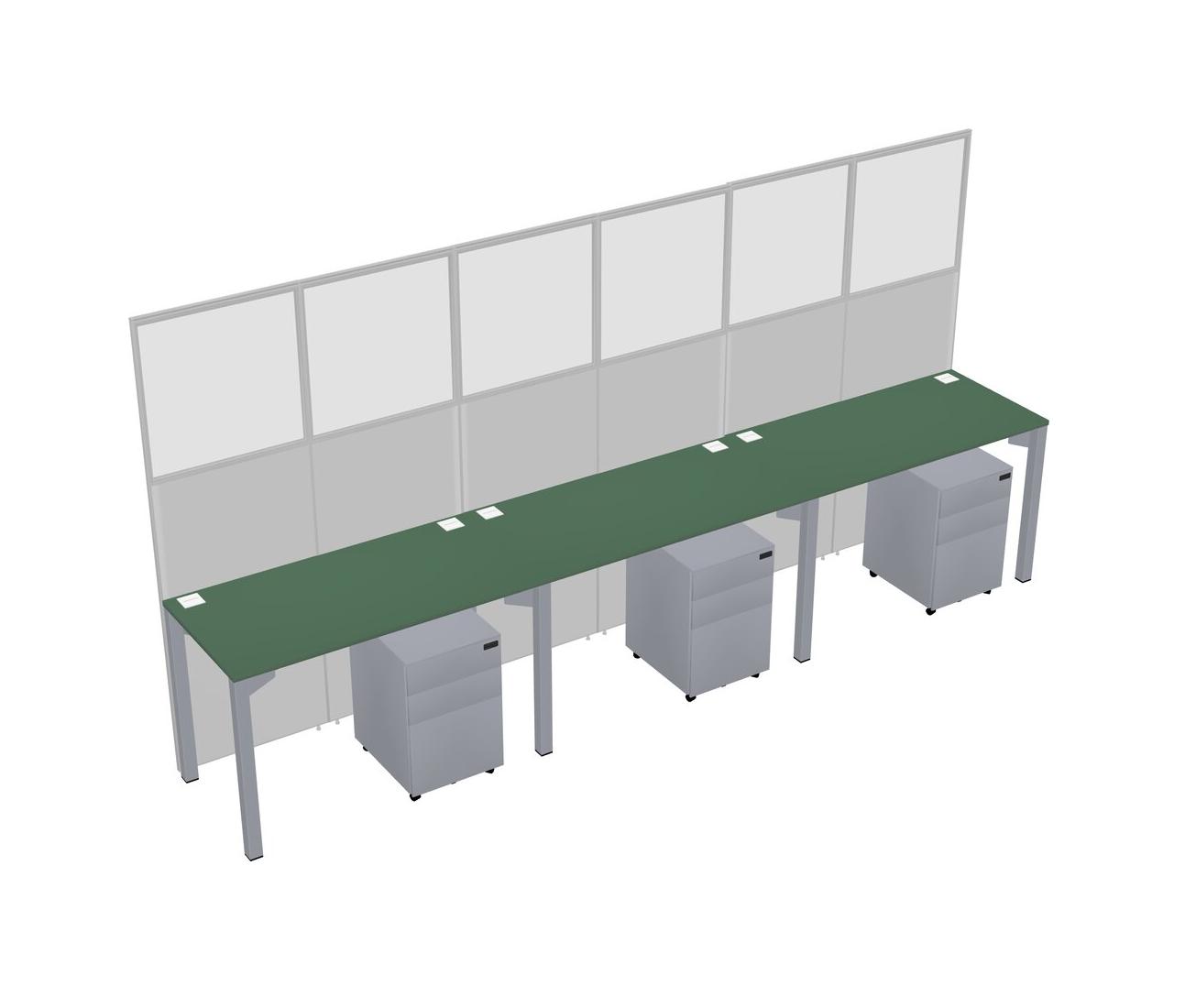 Green Shared Rectangular Office Cubicle Panel System With Mobile Drawers For 3 Persons