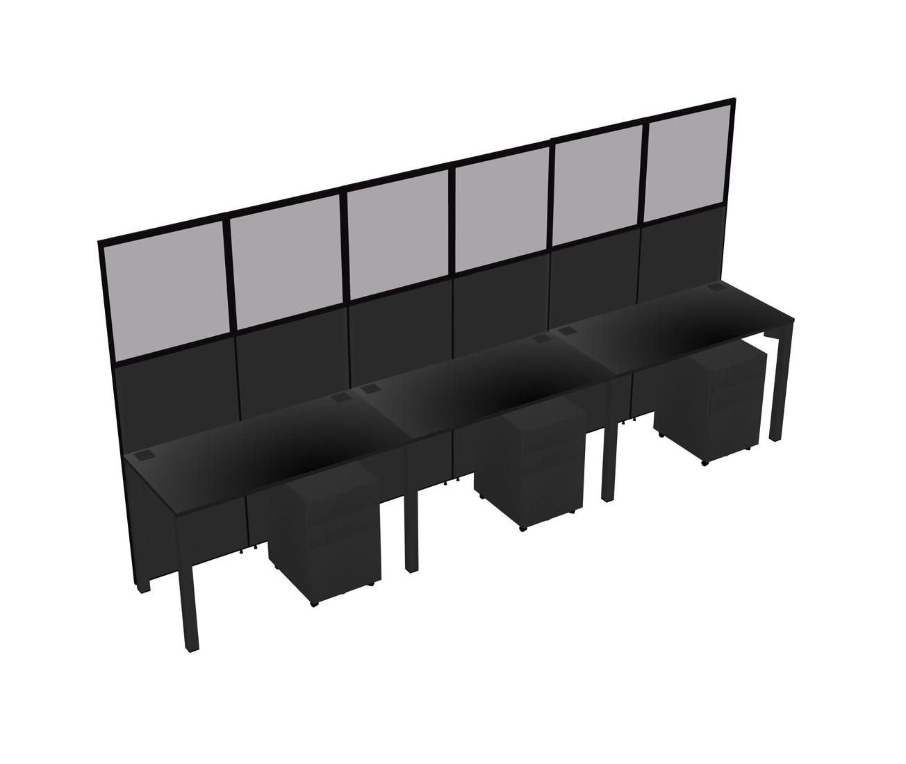 Black Shared Rectangular Office Cubicle Panel System With Mobile Drawers For 3 Persons