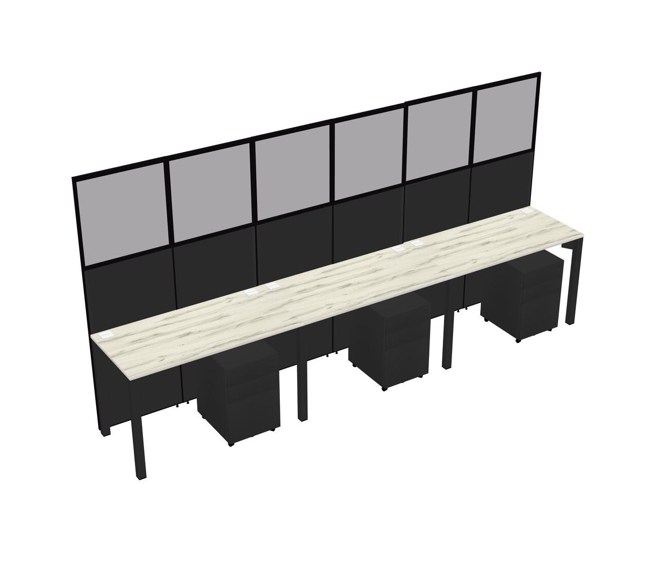 Heinne Holz Shared Rectangular Office Cubicle Panel System With Mobile Drawers For 3 Persons