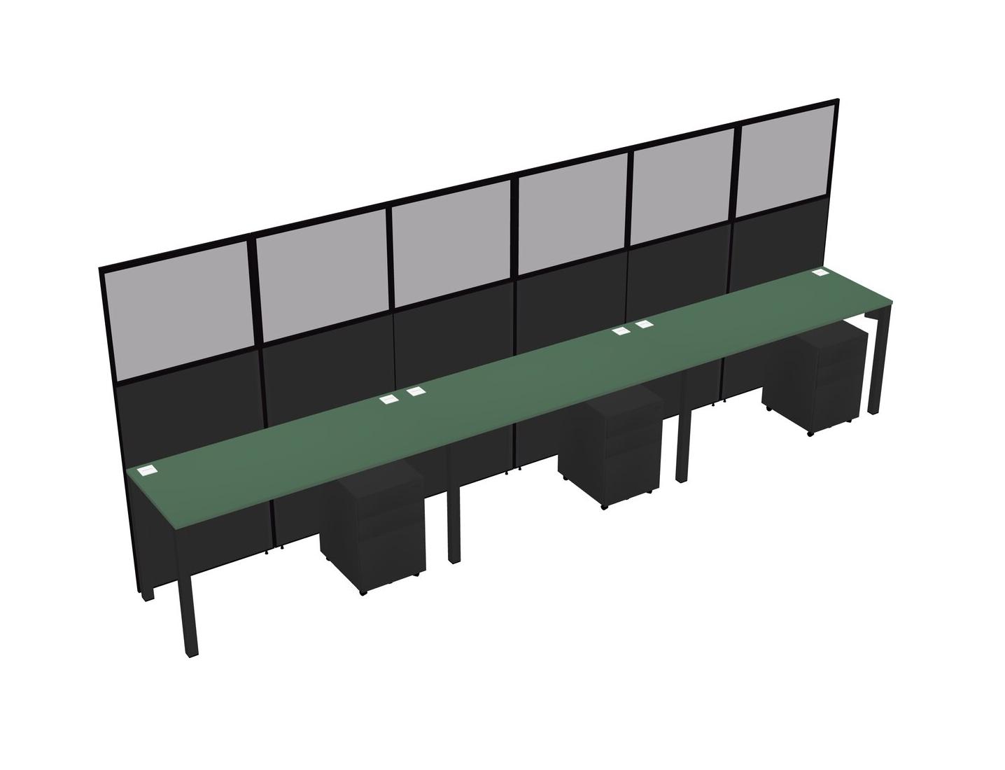 Green Shared Rectangular Office Cubicle Panel System With Mobile Drawers For 3 Persons