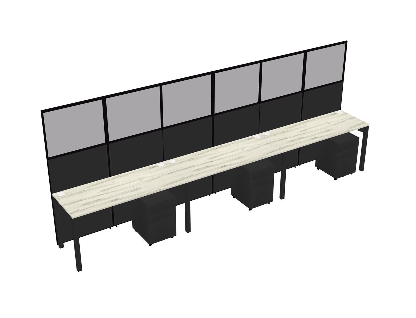 Heinne Holz Shared Rectangular Office Cubicle Panel System With Mobile Drawers For 3 Persons