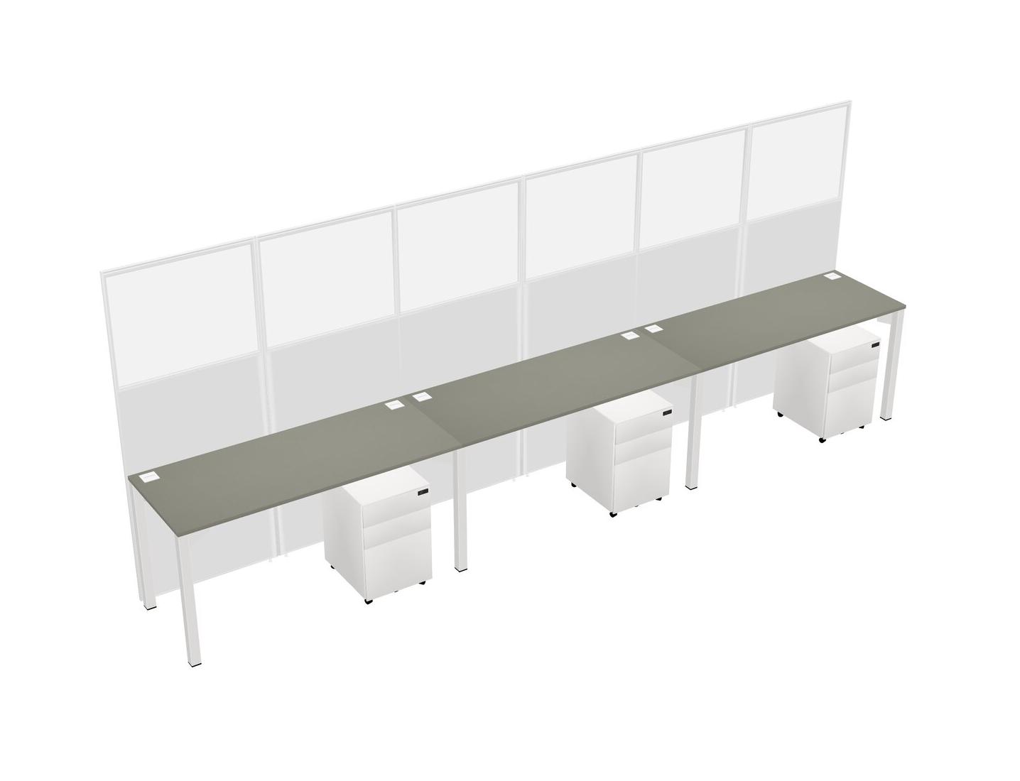 Grey Shadows Shared Rectangular Office Cubicle Panel System With Mobile Drawers For 3 Persons
