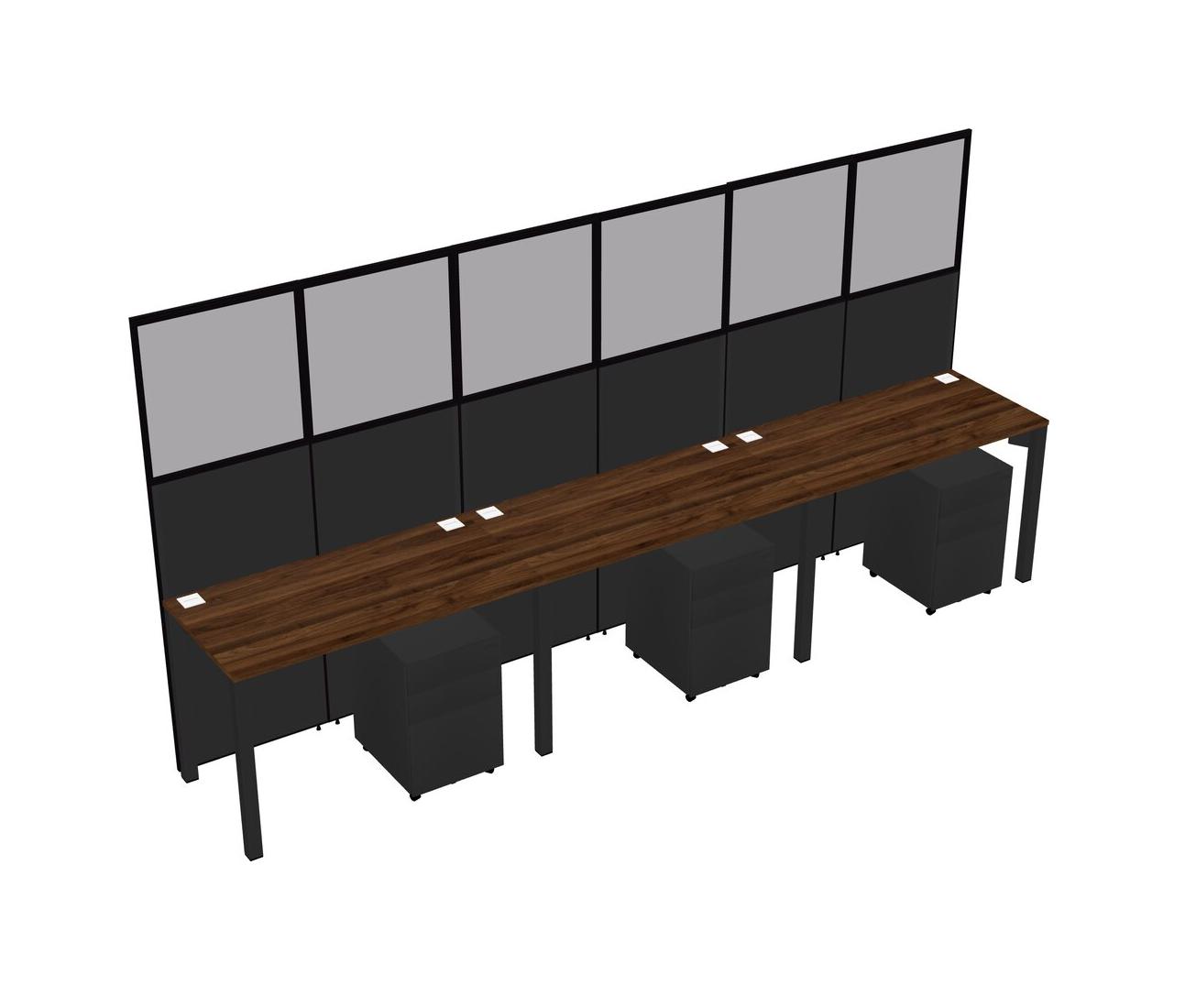 Columbia Walnut Shared Rectangular Office Cubicle Panel System With Mobile Drawers For 3 Persons