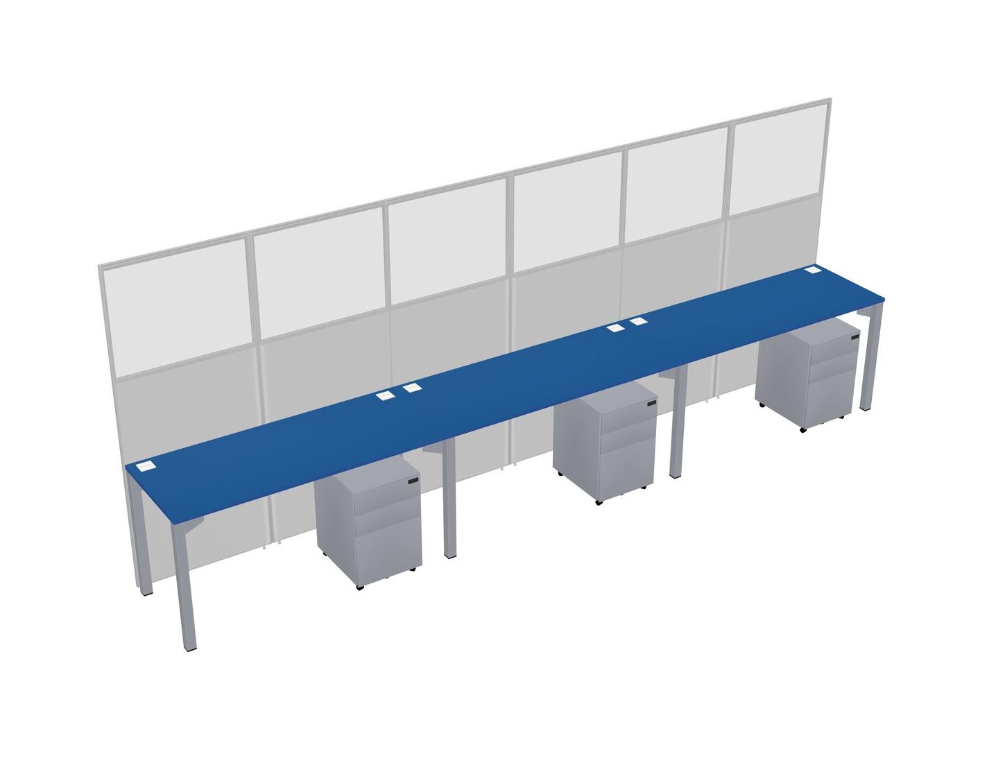 Prism Blue Shared Rectangular Office Cubicle Panel System With Mobile Drawers For 3 Persons