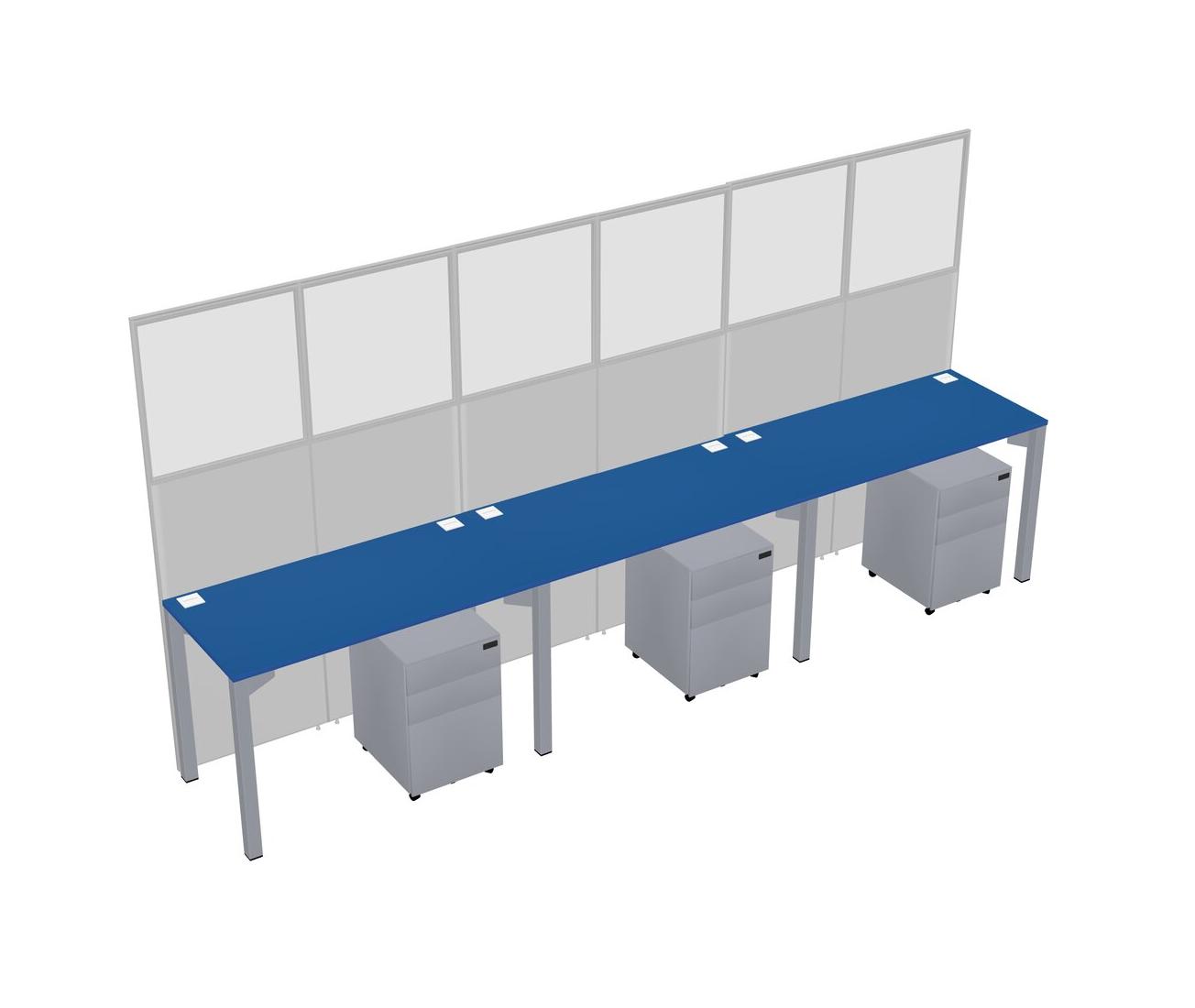 Prism Blue Shared Rectangular Office Cubicle Panel System With Mobile Drawers For 3 Persons