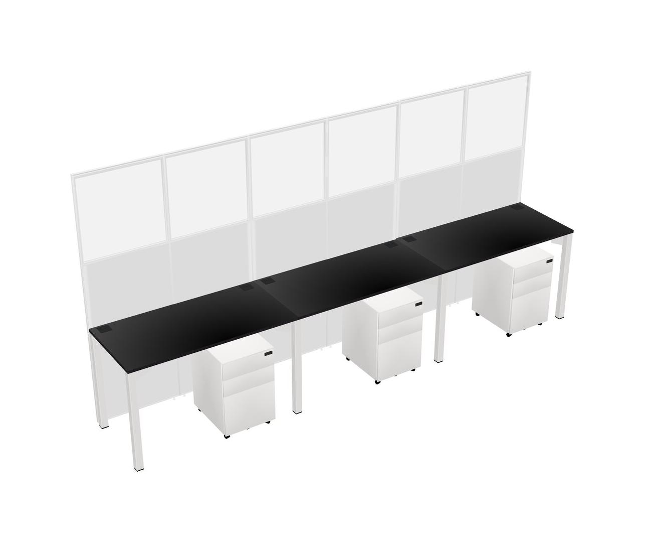 Black Shared Rectangular Office Cubicle Panel System With Mobile Drawers For 3 Persons