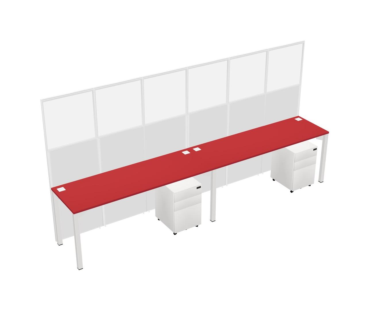 Prism Red Shared Rectangular Office Cubicle Panel System With Mobile Drawers For 2 Persons