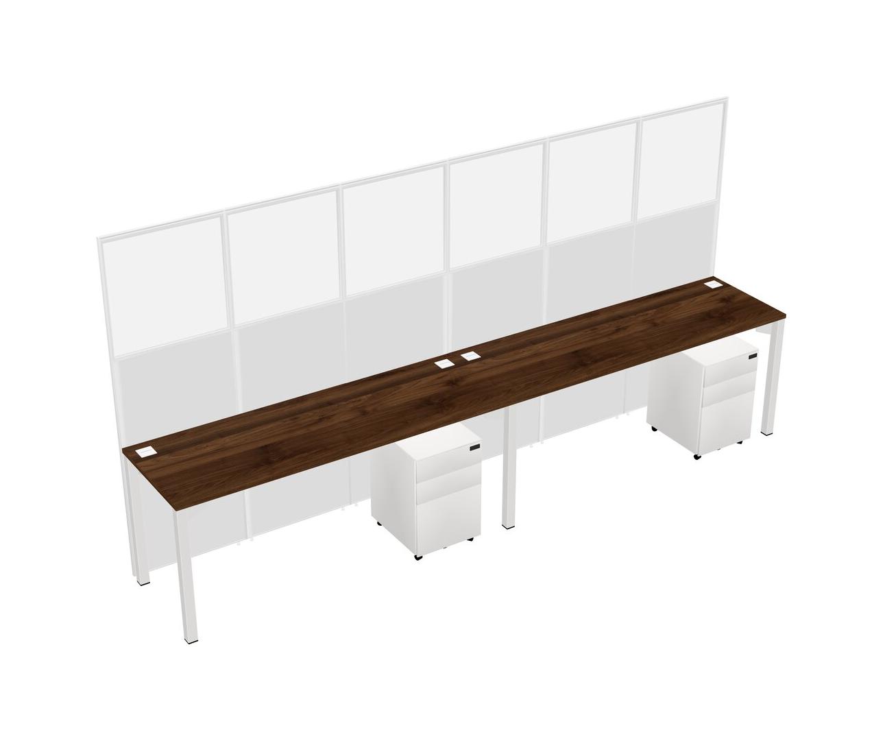 Columbia Walnut Shared Rectangular Office Cubicle Panel System With Mobile Drawers For 2 Persons