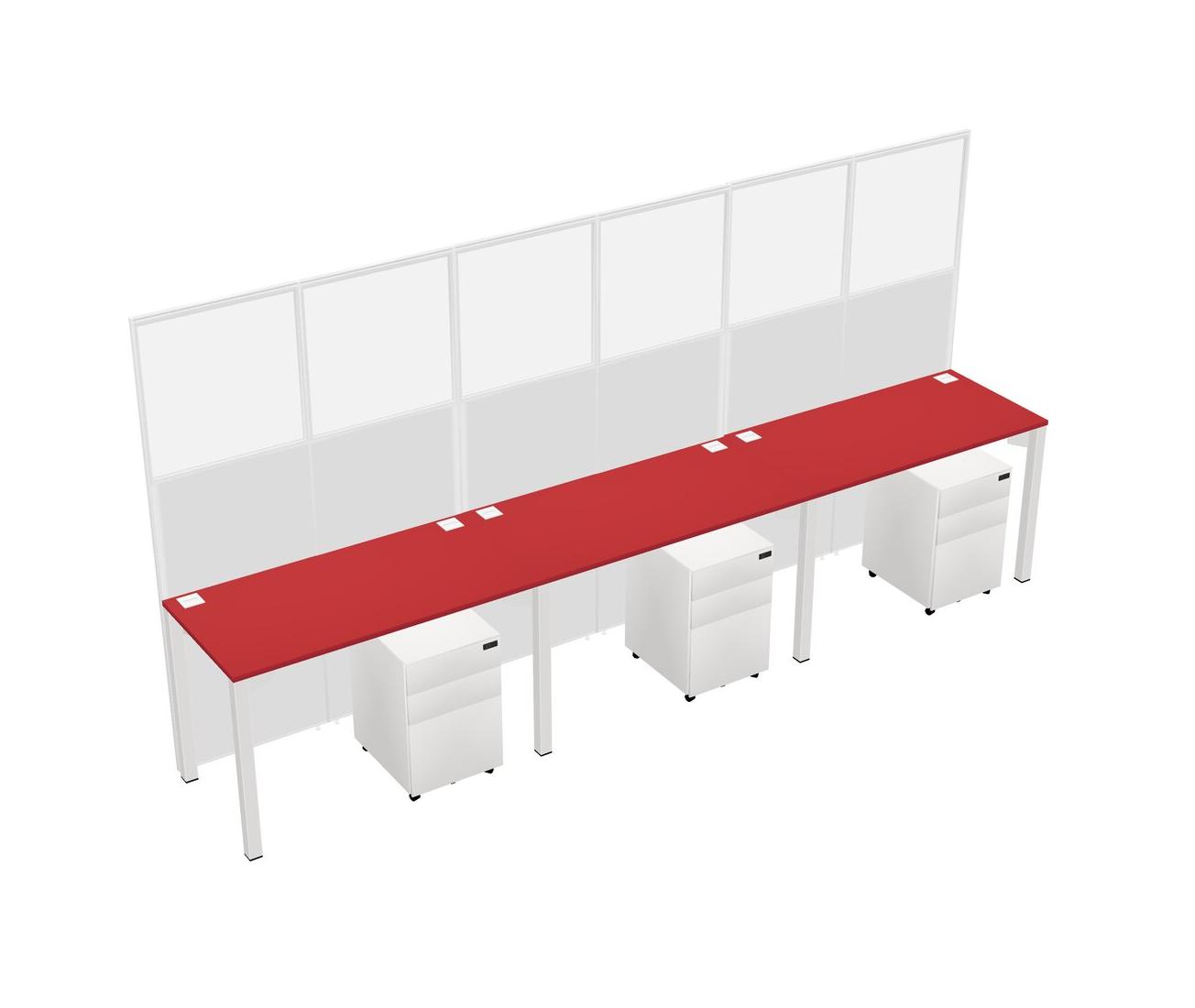 Prism Red Shared Rectangular Office Cubicle Panel System With Mobile Drawers For 3 Persons