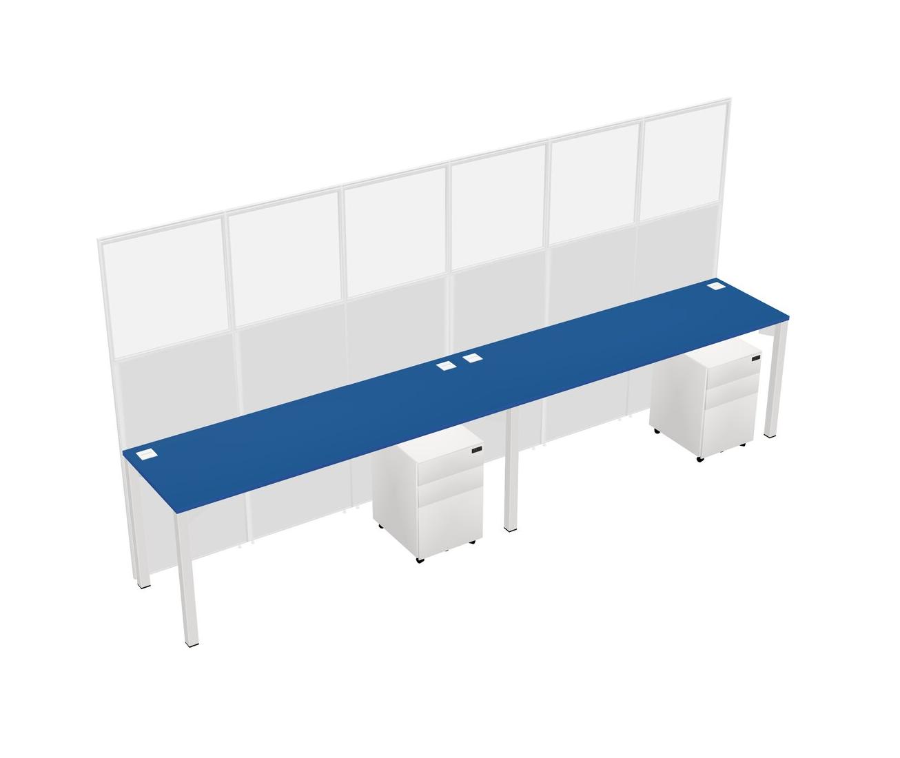 Prism Blue Shared Rectangular Office Cubicle Panel System With Mobile Drawers For 2 Persons