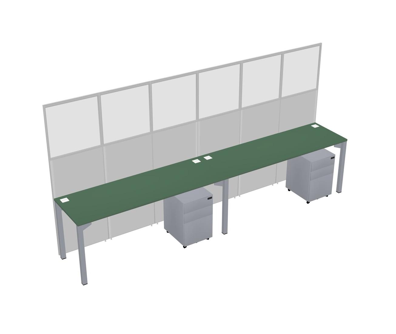 Green Shared Rectangular Office Cubicle Panel System With Mobile Drawers For 2 Persons