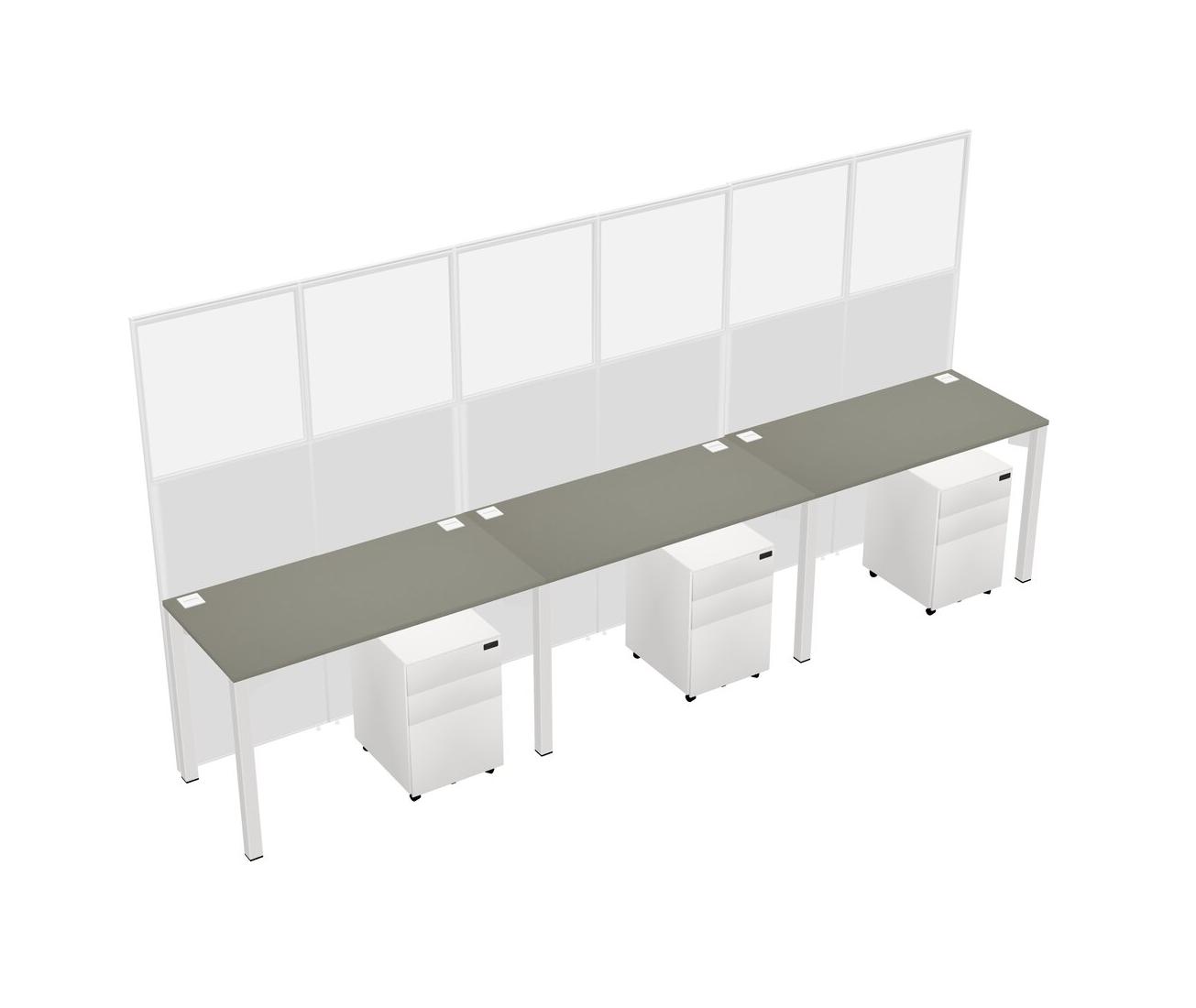 Grey Shadows Shared Rectangular Office Cubicle Panel System With Mobile Drawers For 3 Persons
