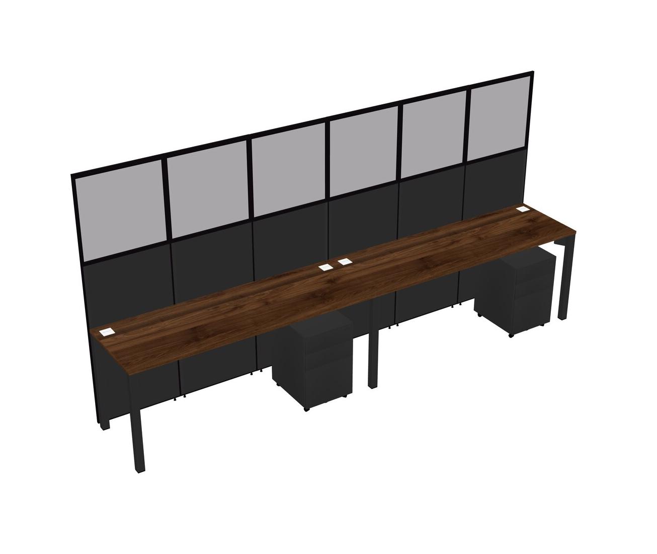 Columbia Walnut Shared Rectangular Office Cubicle Panel System With Mobile Drawers For 2 Persons