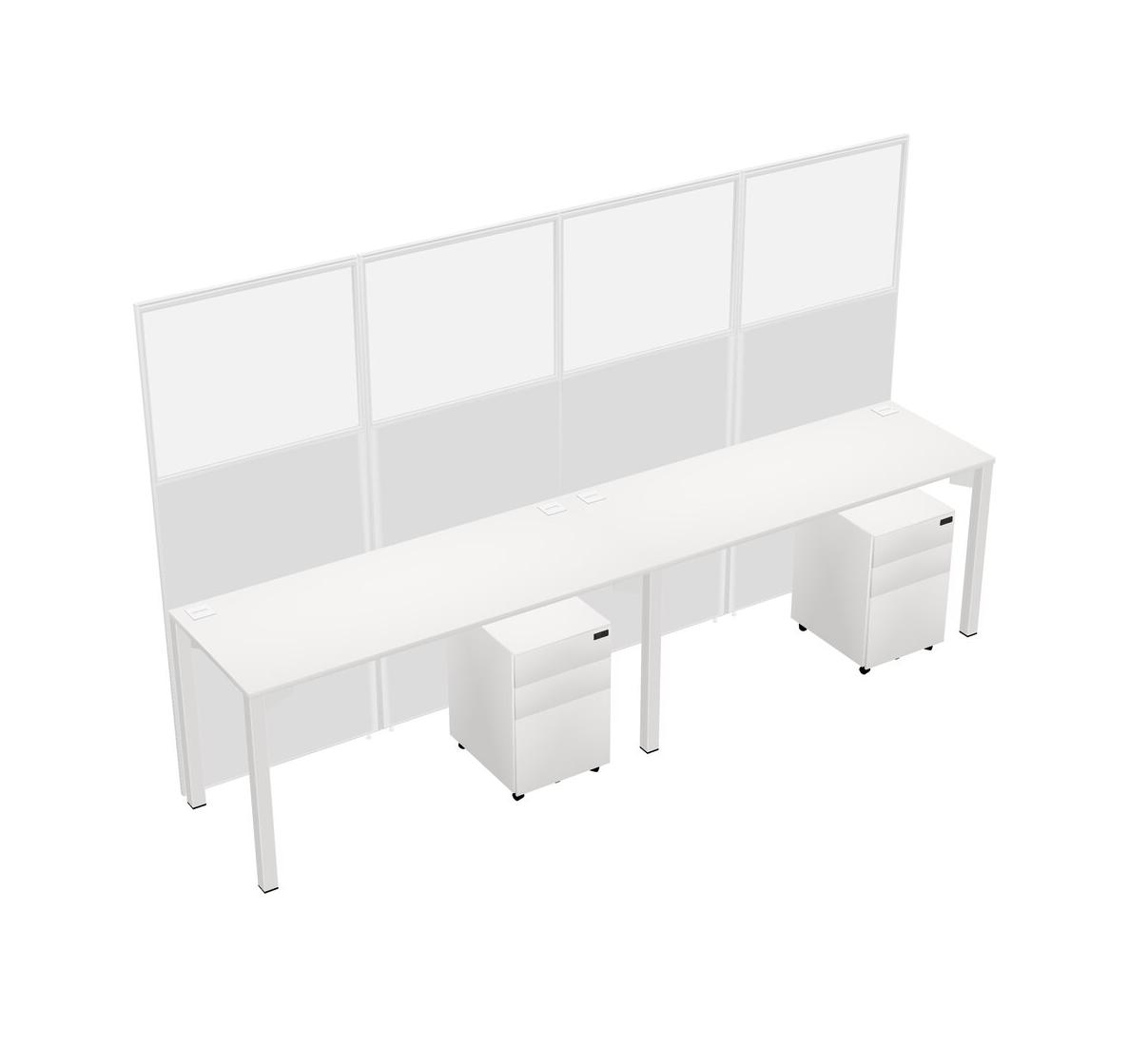 White Shared Rectangular Office Cubicle Panel System With Mobile Drawers For 2 Persons