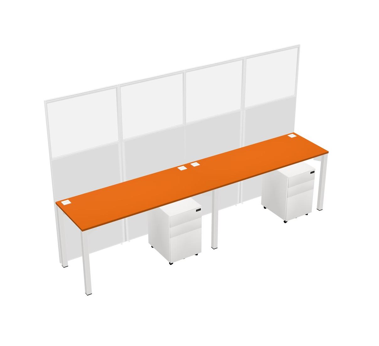Orange Shared Rectangular Office Cubicle Panel System With Mobile Drawers For 2 Persons