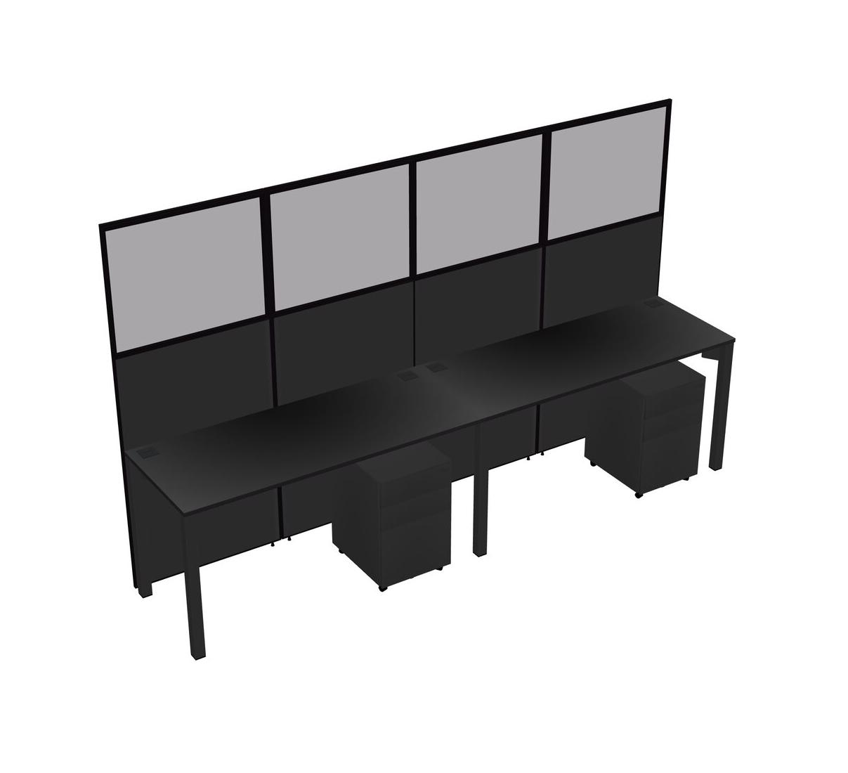 Black Shared Rectangular Office Cubicle Panel System With Mobile Drawers For 2 Persons
