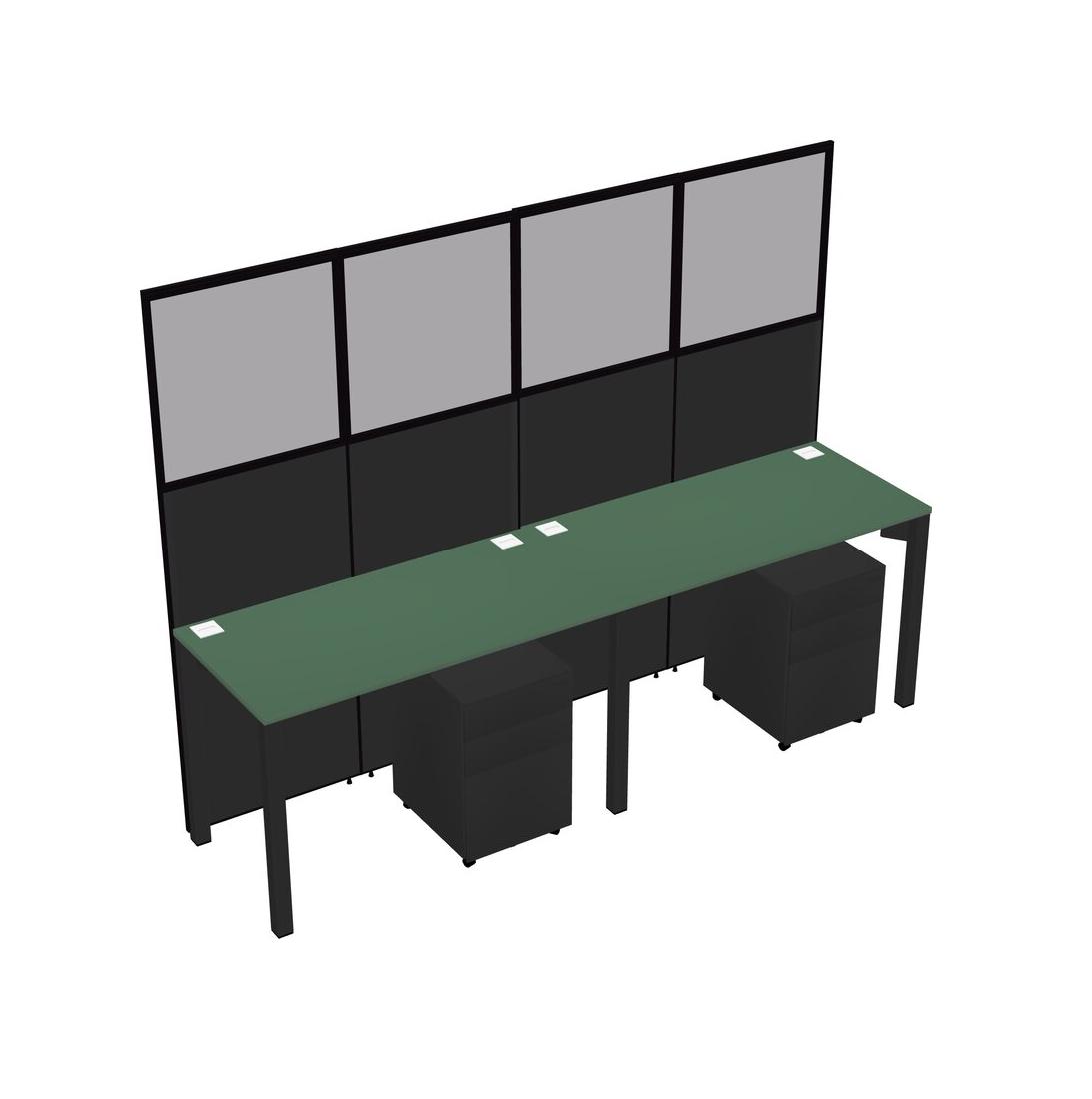 Green Shared Rectangular Office Cubicle Panel System With Mobile Drawers For 2 Persons